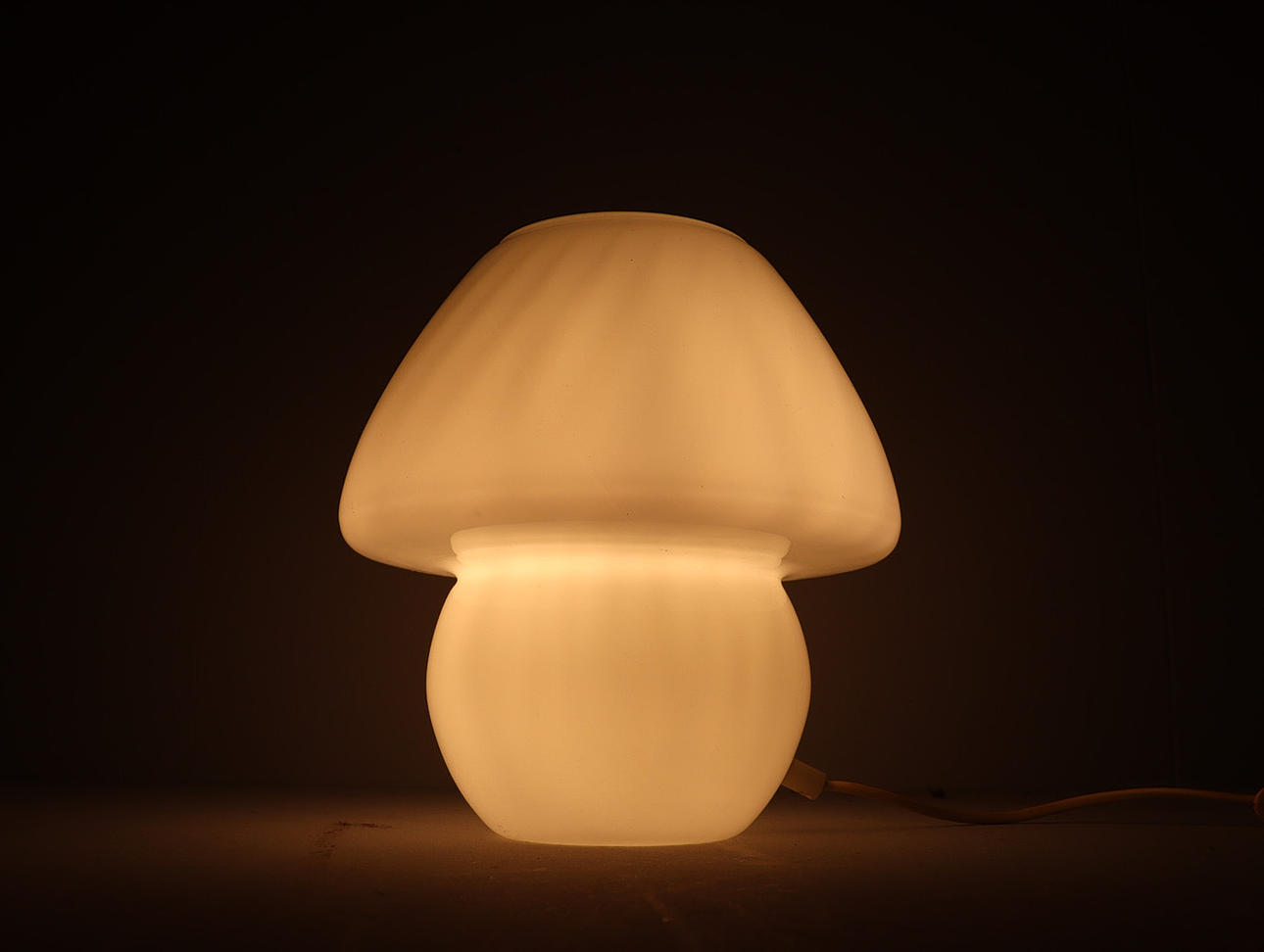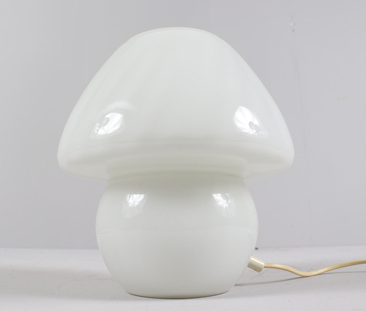 Murano-sienilamppu/sienilamppu, 1970-luku, rakenne lasista valkoisella värillä, Mitat n.: h. 26 cm, halkaisija: 25 cm.