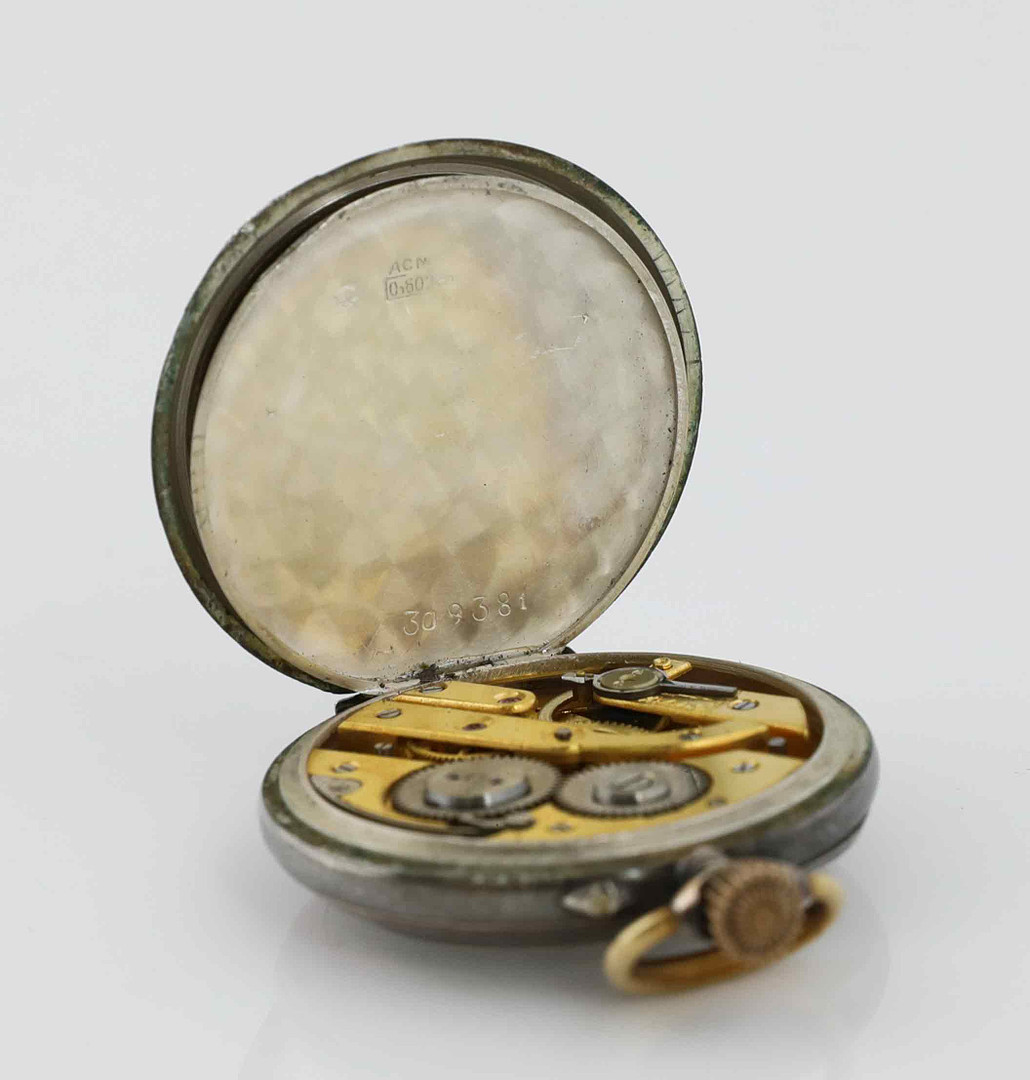 3593589. TASKUKELLO, hopea, Sylinterit 10 rubiini.