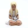 Figuuri, istuva tyttö lintujen kanssa, signeerattu GJ.