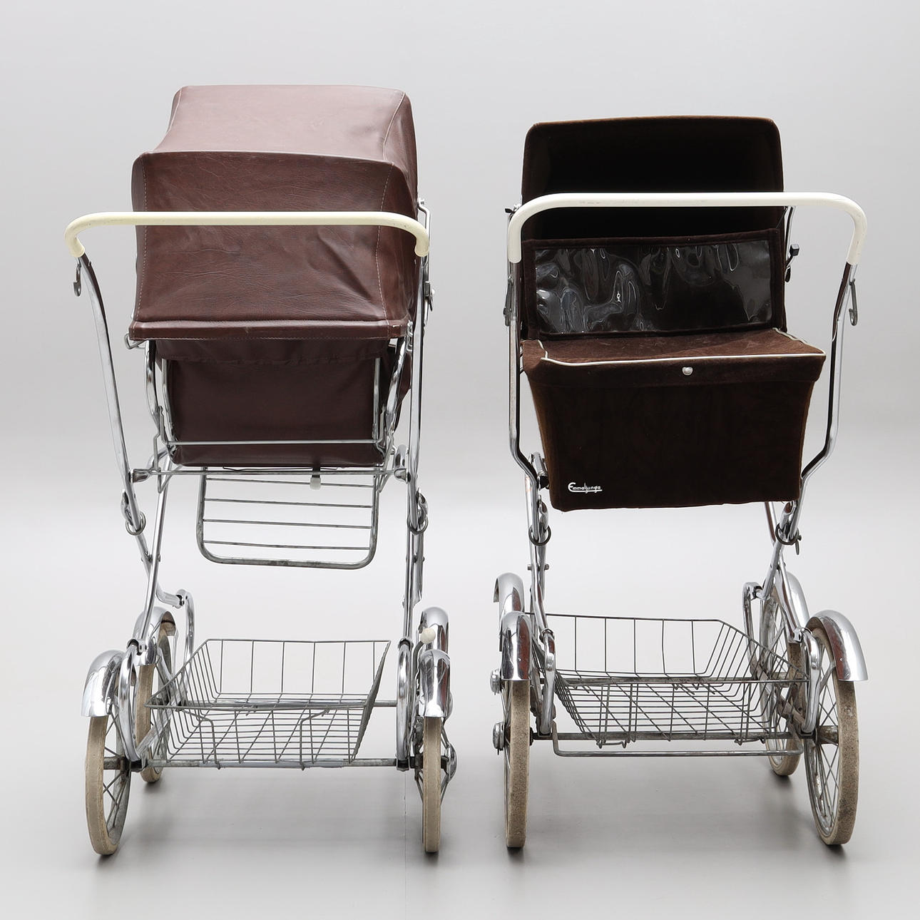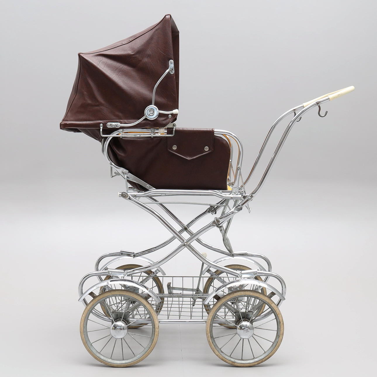 Rattaiden mitat; kokonaiskorkeus 114 cm, pinnasängyn korkeus 75 cm, kahvan korkeus 97 cm, leveys n. 45 cm.