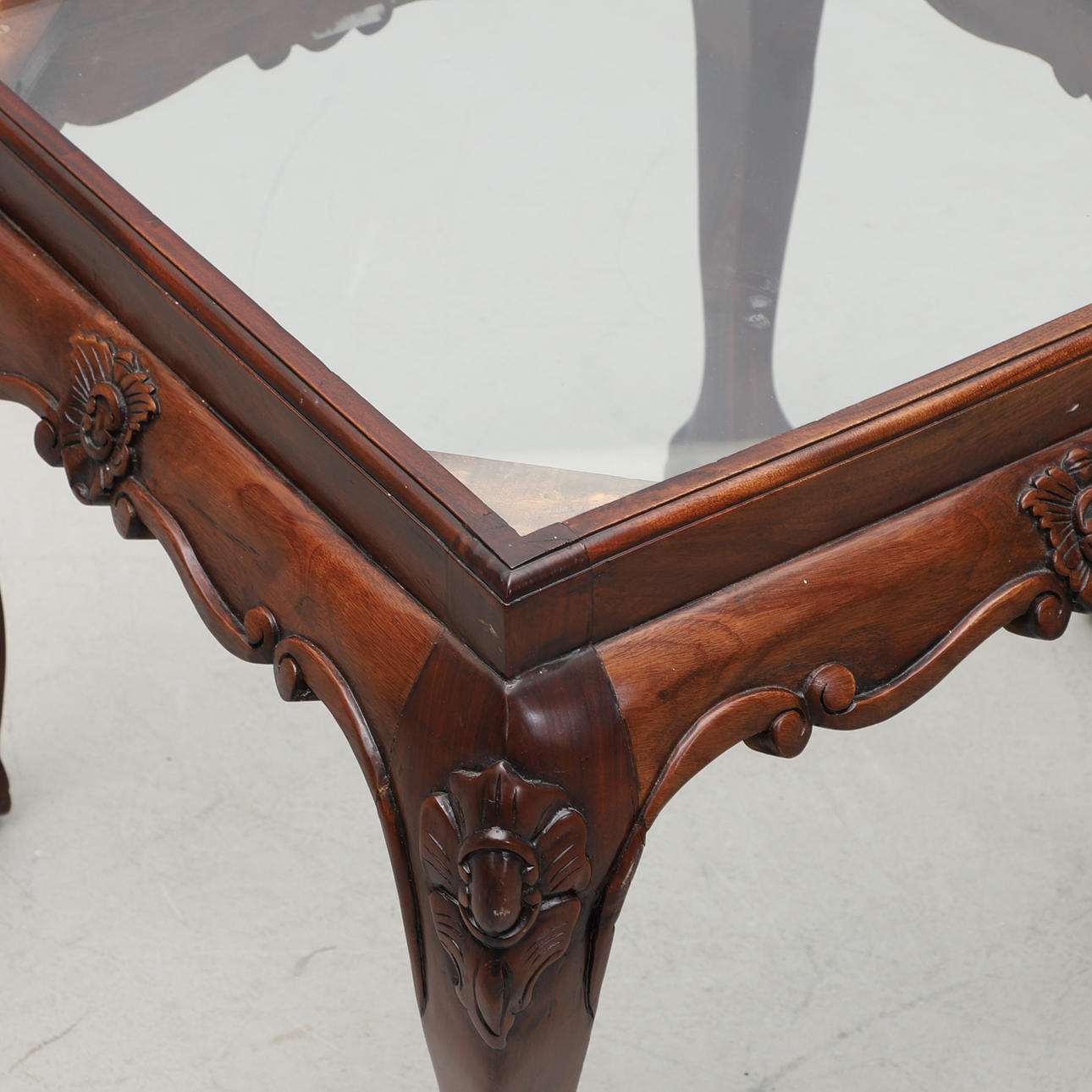 Runko mahonkia. Löysä lasikansi. 63 x 63, höjd 54 cm.