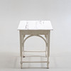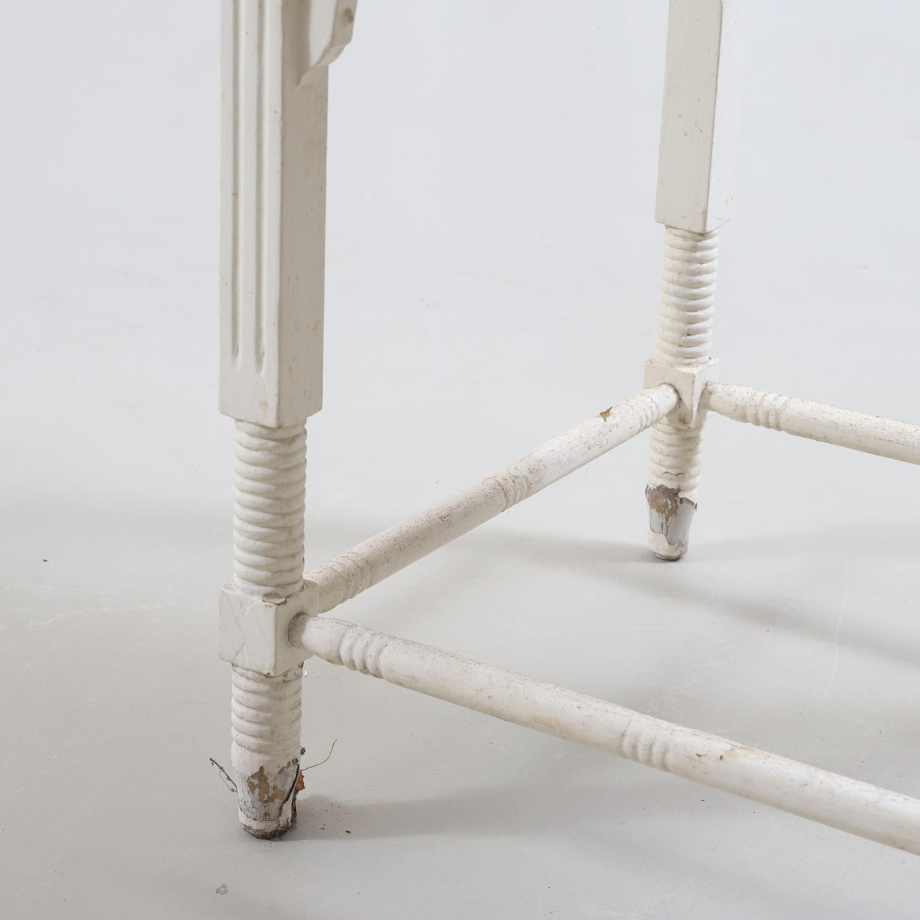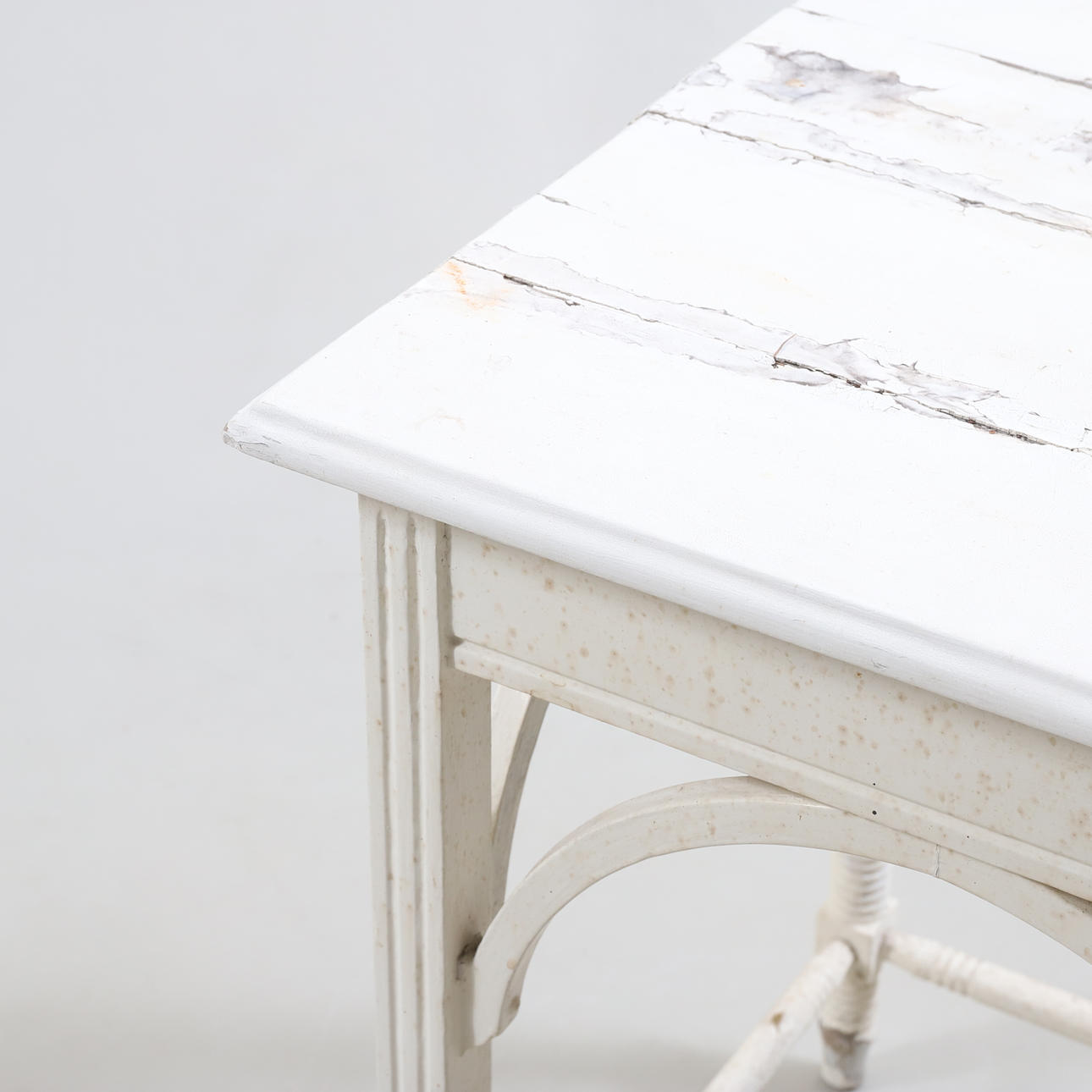 Maalattu. Leikattu ja käännetty sisustus. Yhdistetty jalka-asento. Pituus n. 60 cm. Leveys n. 60 cm. Korkeus n. 77 cm.