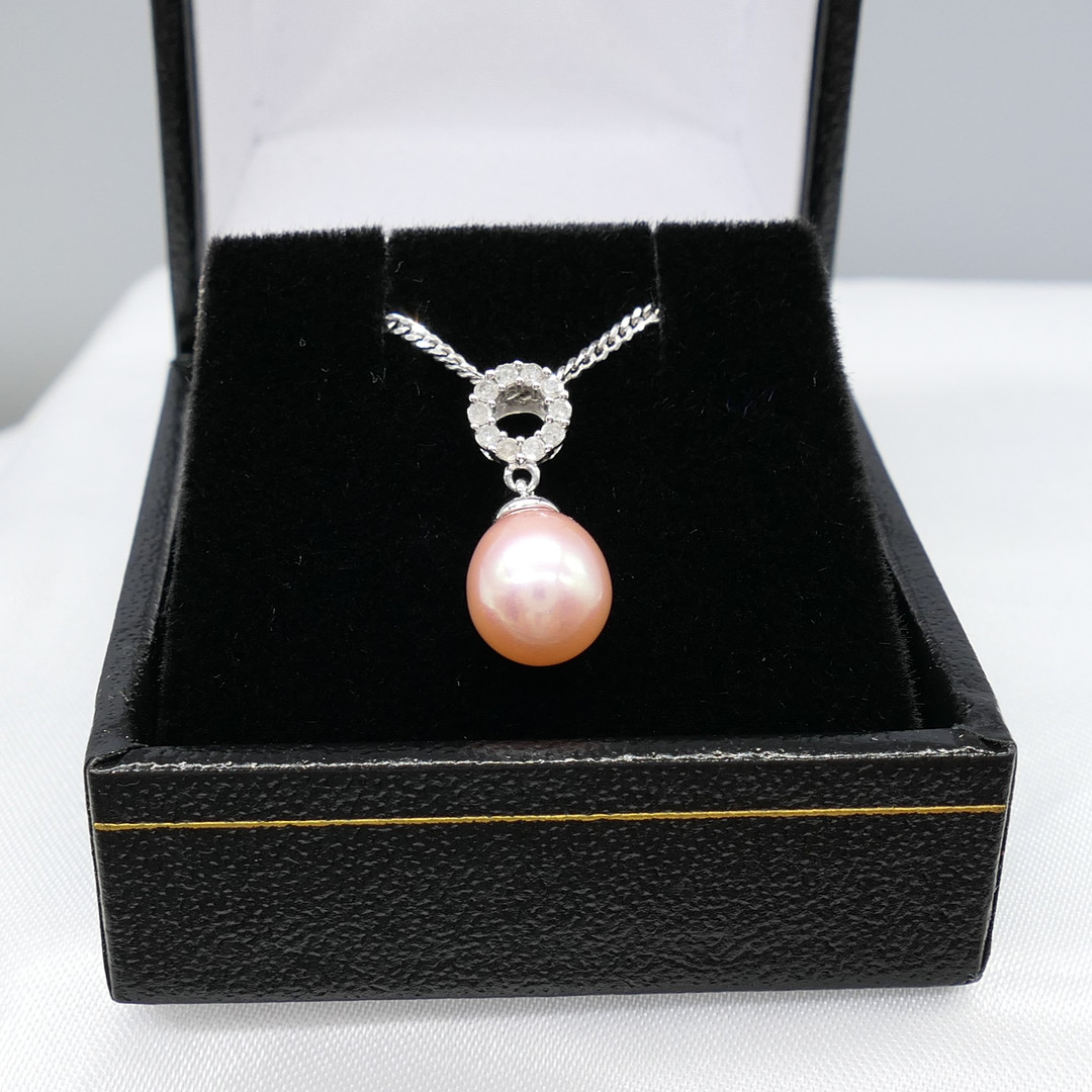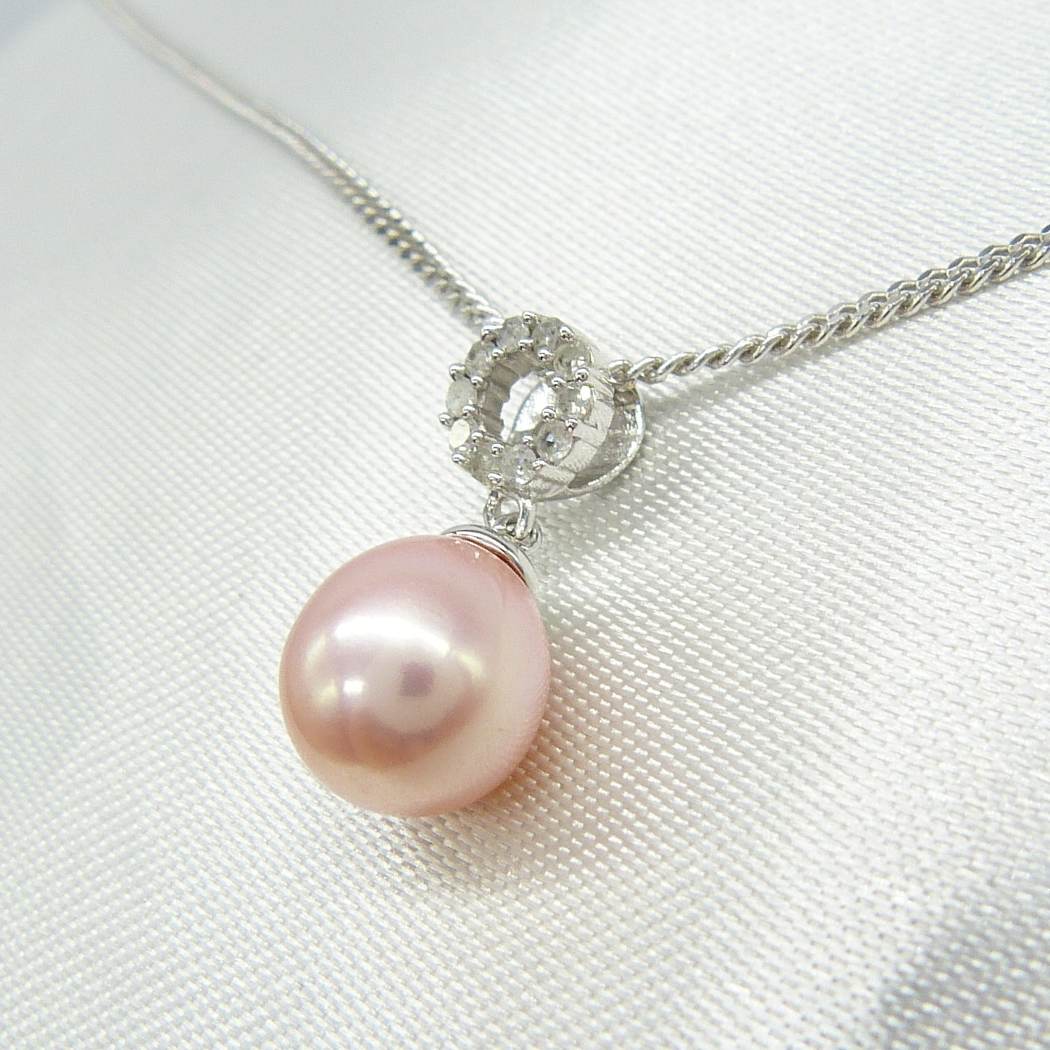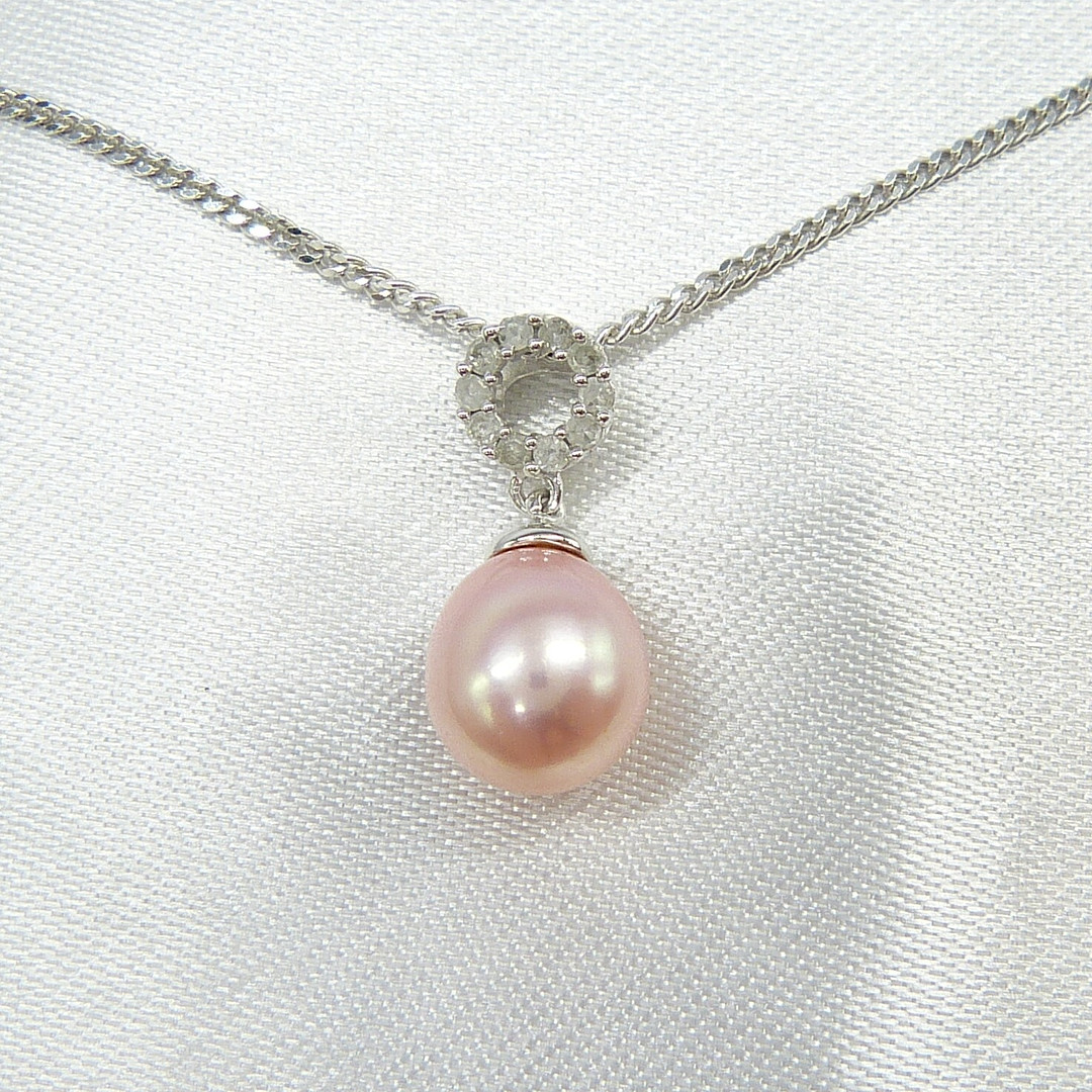 3640617. VAALEANPUNAINEN HELMI & TIMANTTI kaulakoru.