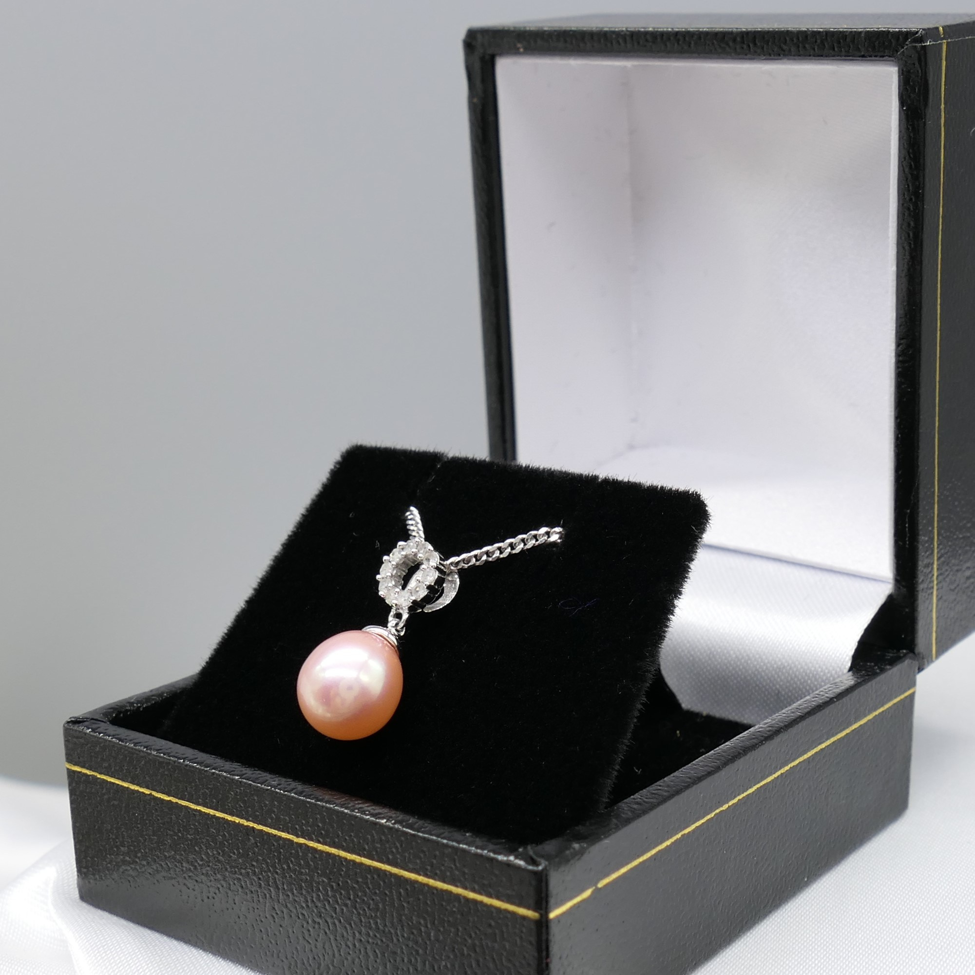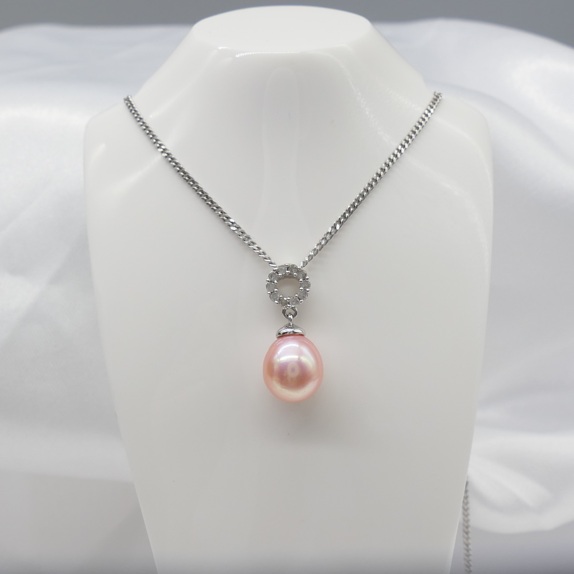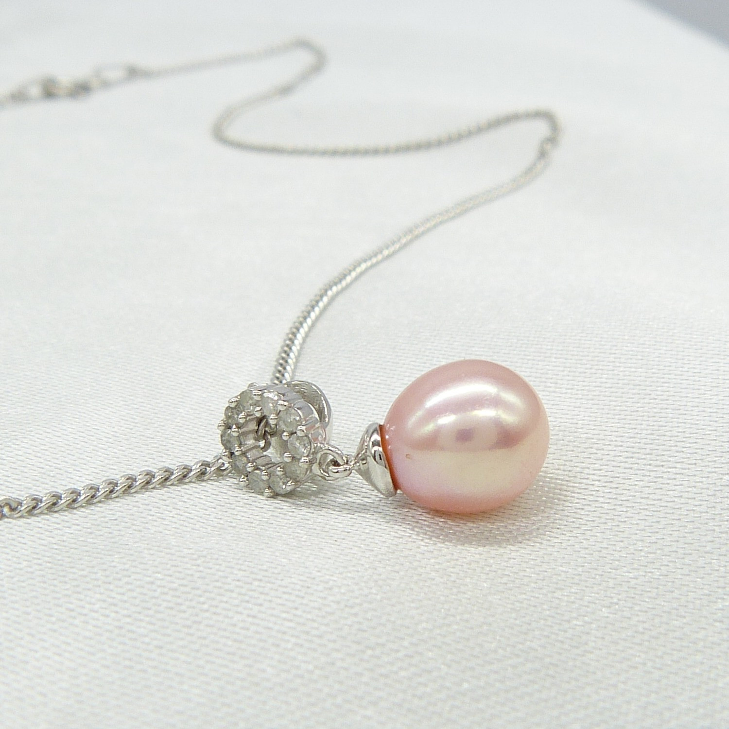 3640617. VAALEANPUNAINEN HELMI & TIMANTTI kaulakoru.