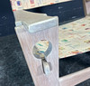 Tuoli on lasitettu uudelleen vaalealla valkoisella lakalla. Palkkiot uusittiin.