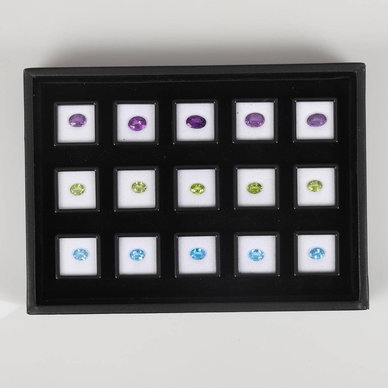 5 ametistia yhteensä 15.76 ct.