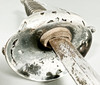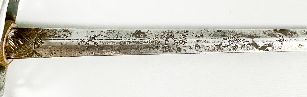 Epäselviä leimoja, jälkiä ja tahroja terässä. Balja hienossa kunnossa.