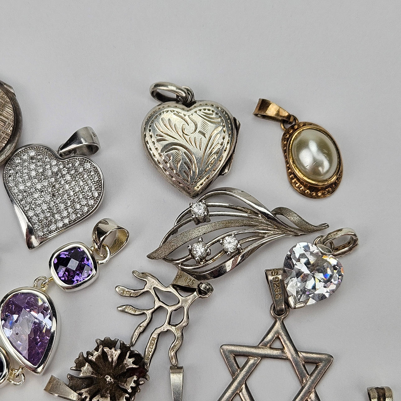 3700090. RIIPUKSET JA MEDALJONGIT, hopeaa.