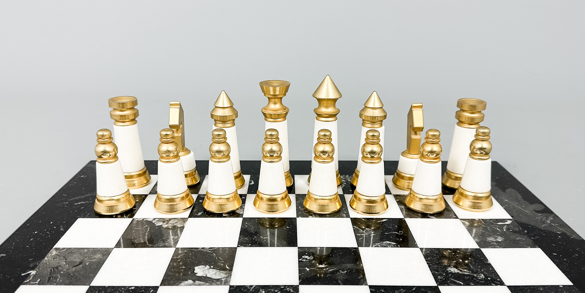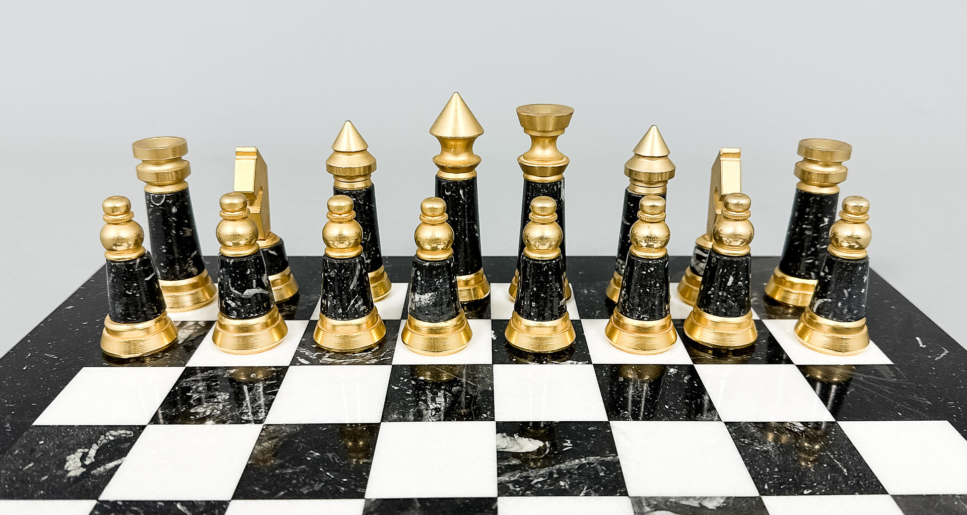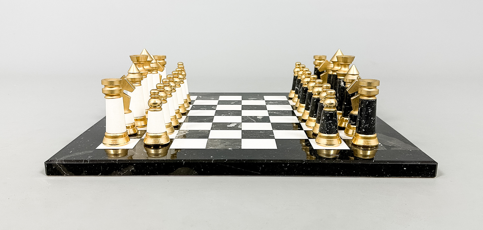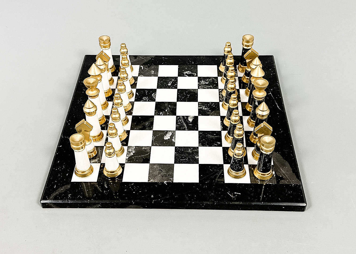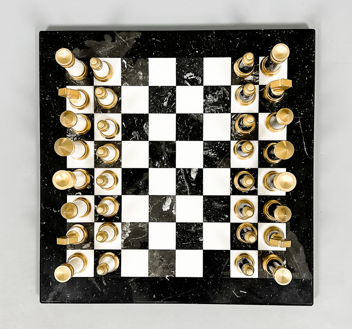 3707470. SHAKKISETTI, marmori, messinki, 1900-luku.