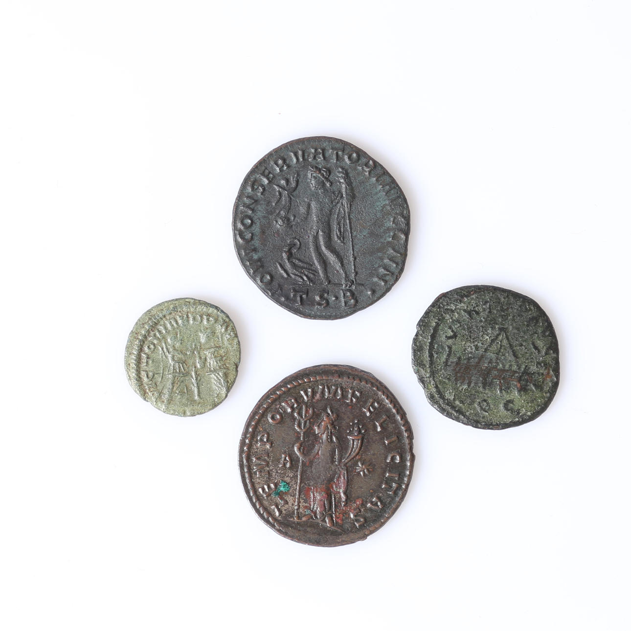 Quinarius Allectus (riippumaton) Britannia ”VIRTUS AVG”, Colchesterin rahapaja, 2,03 grammaa AvG, Folli Constantine I 'The Great' IOVI CONSERVATORI', Thessalonican rahapaja, XF+, Antoniniauve tacitus 'TEMPORYM FELICITAS' 3,55 grammaa VF ja Folli II Constantine 'VICTORIAE' Thessalonikin rahapaja 1,38 grammaa aVF (4).