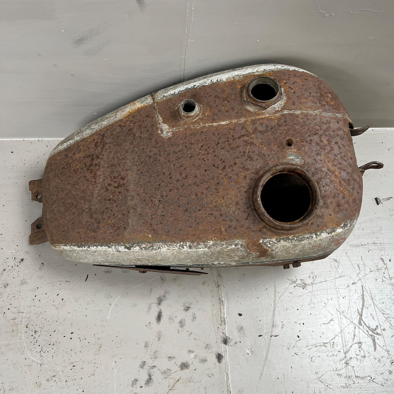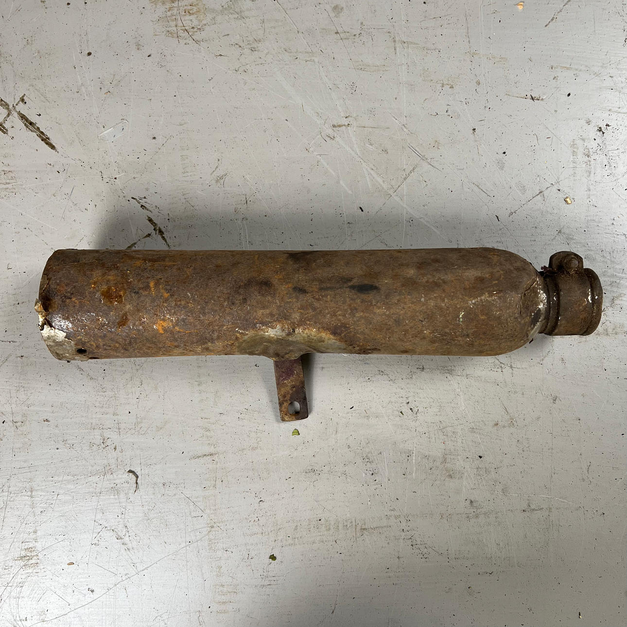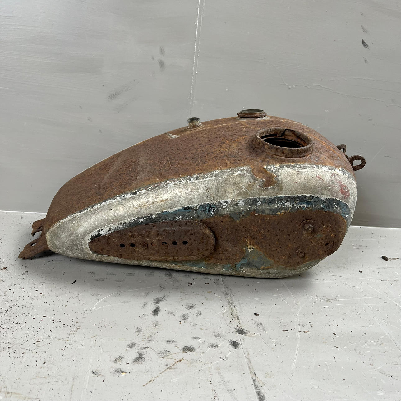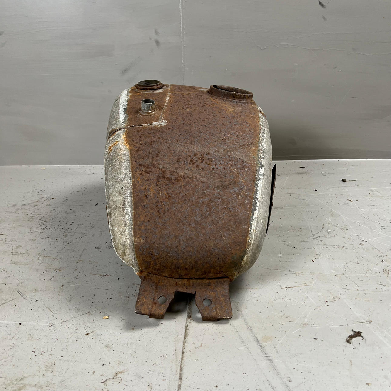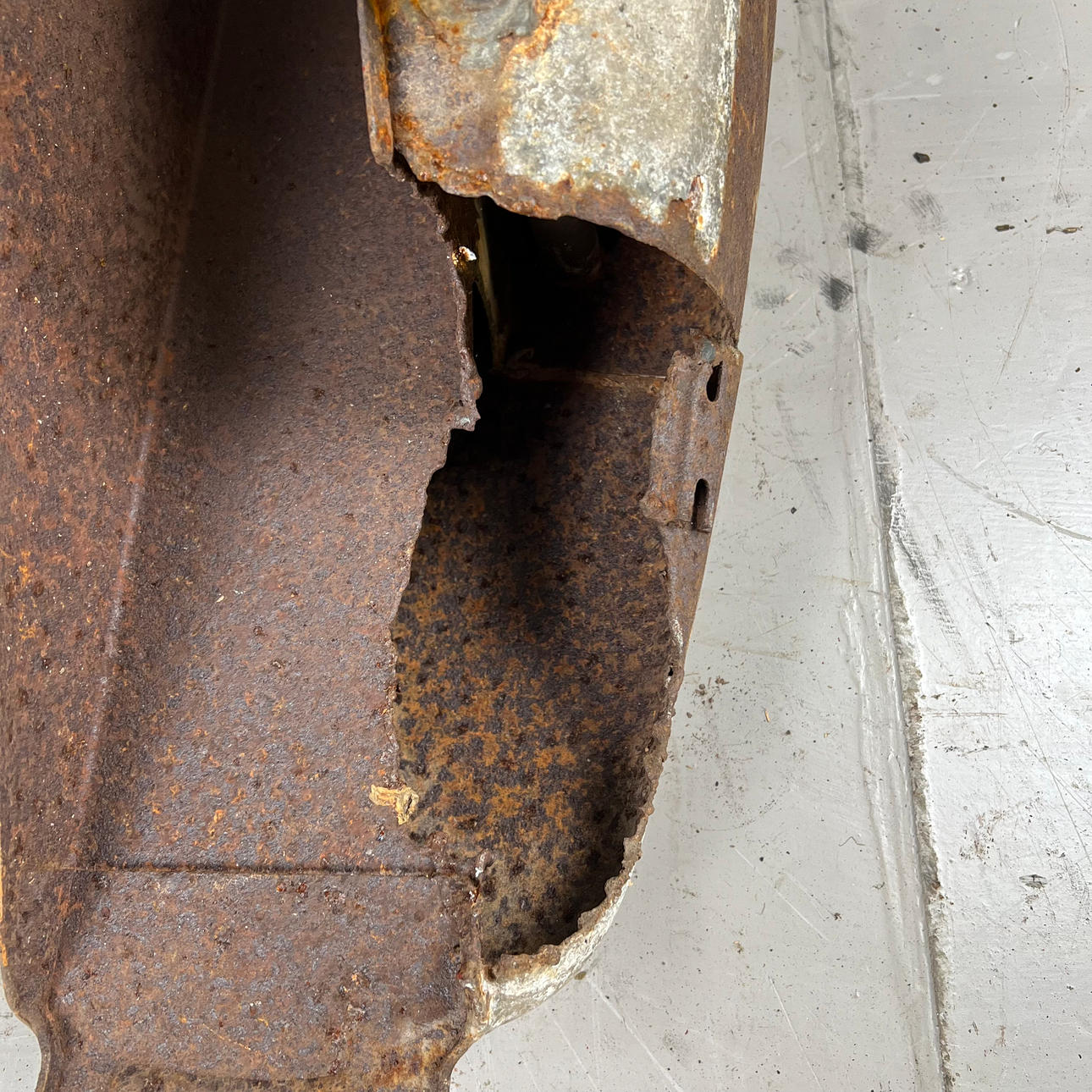 Polttoainesäiliö on vaurioitunut pahasti ruosteesta ja leikatusta osasta.