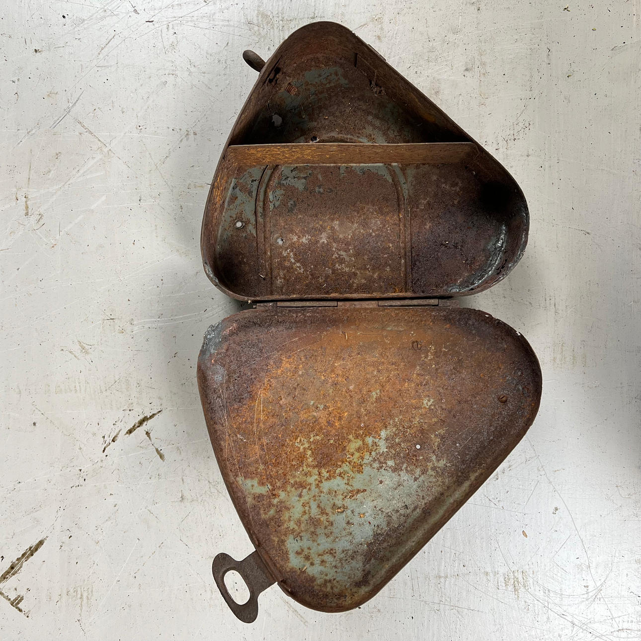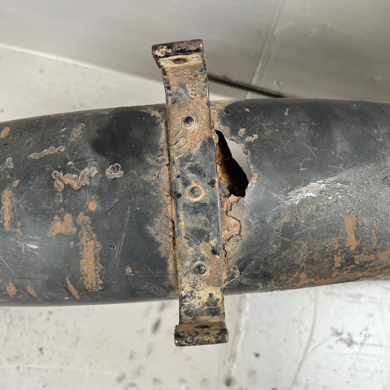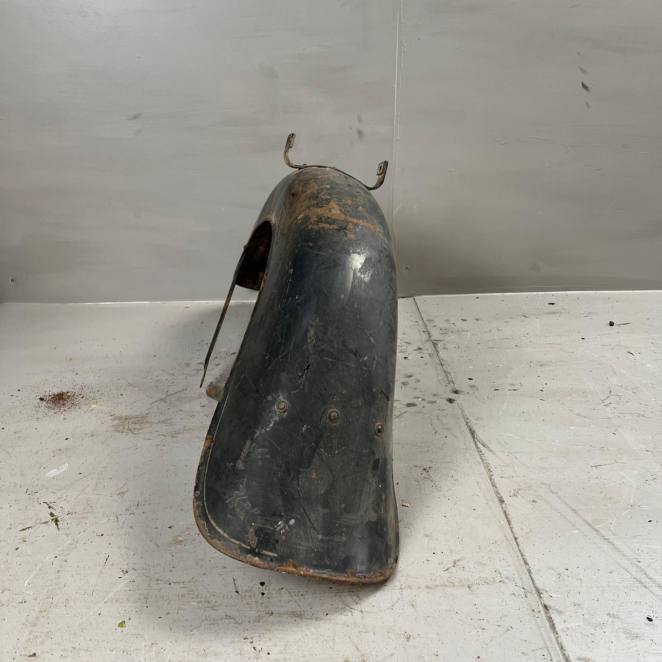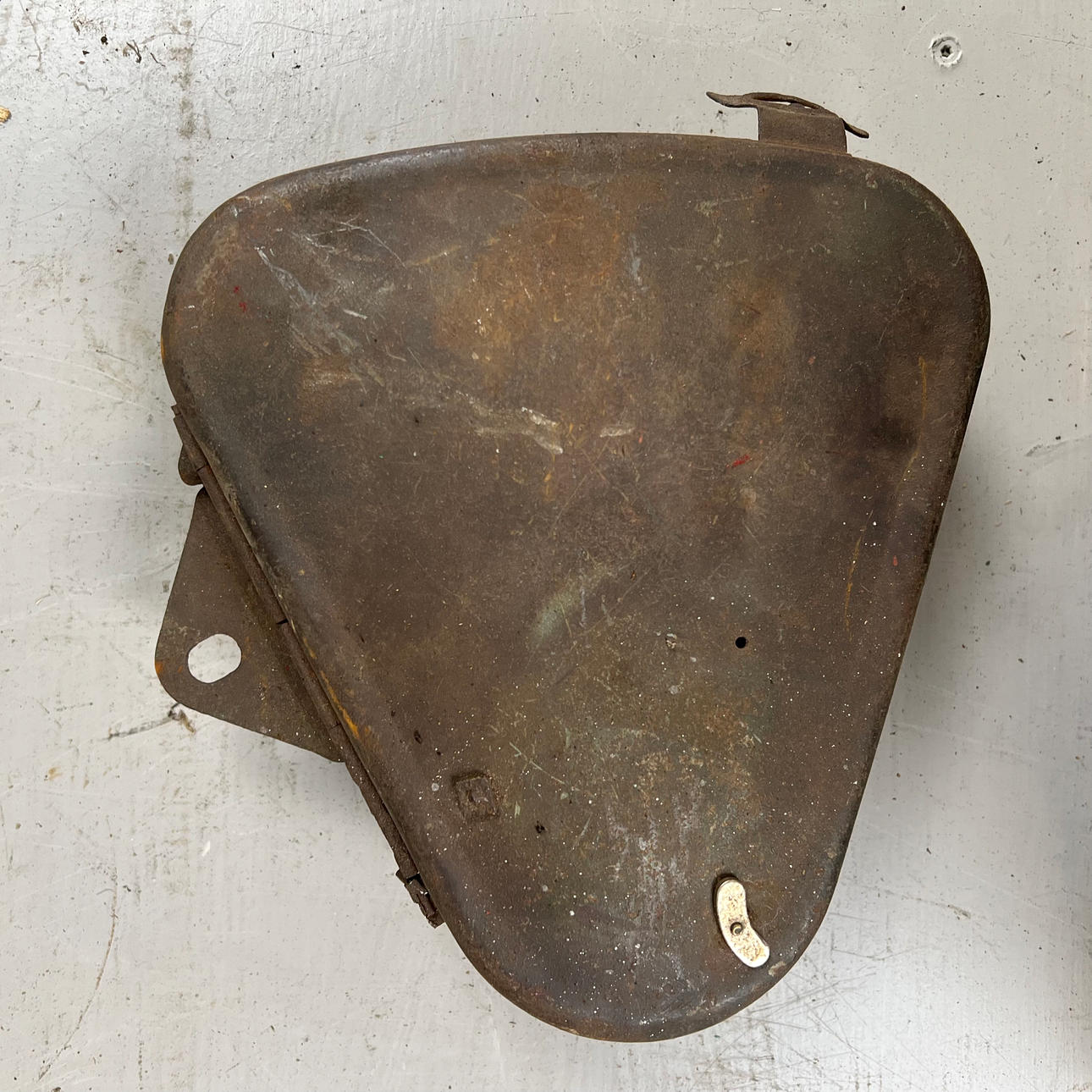 Polttoainesäiliö on vaurioitunut pahasti ruosteesta ja leikatusta osasta.