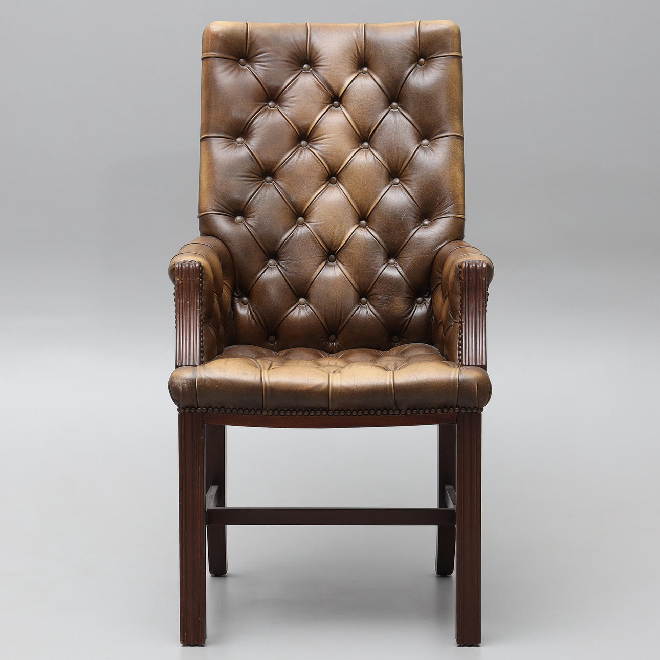 Nahkainen nojatuoli/pöytätuoli.