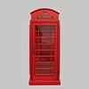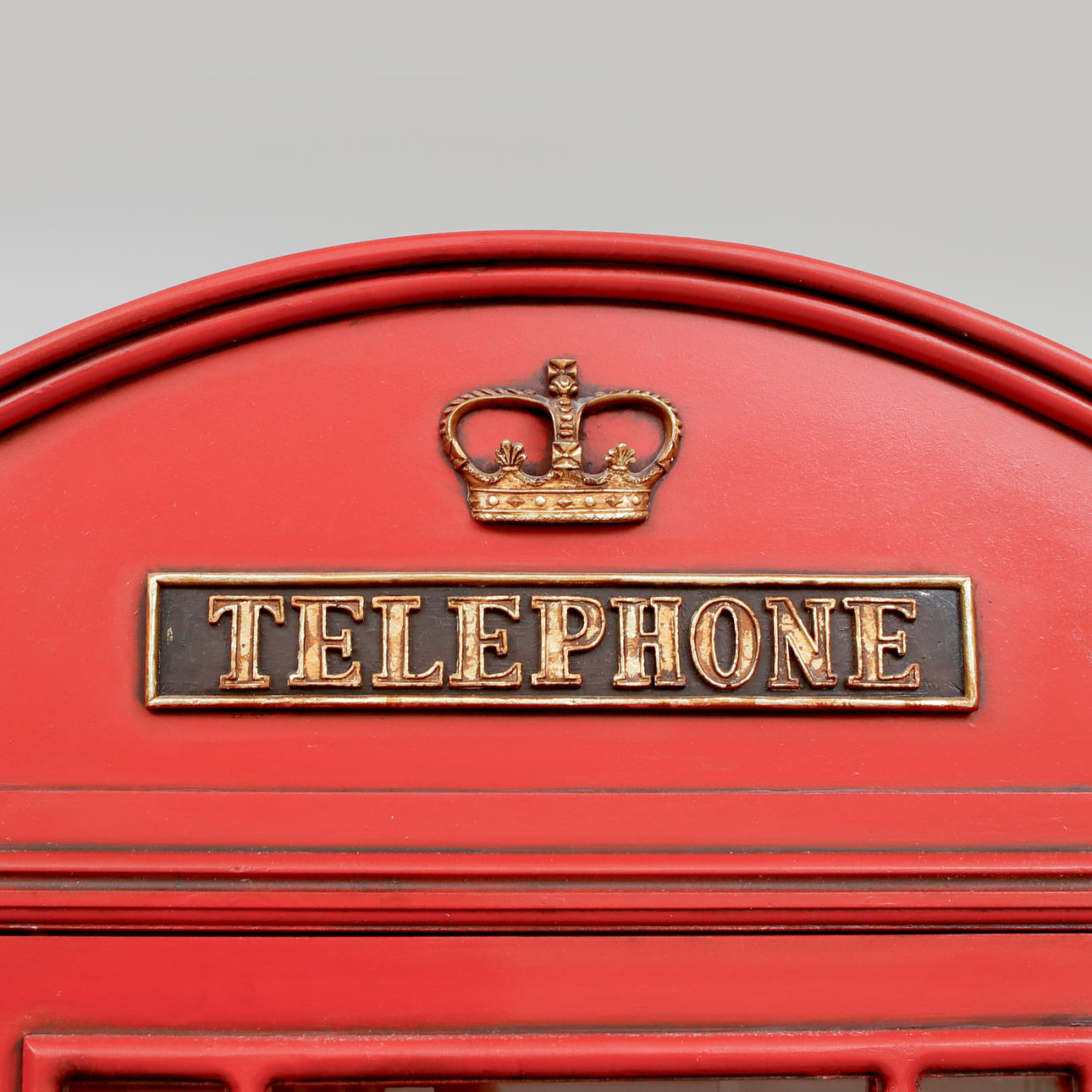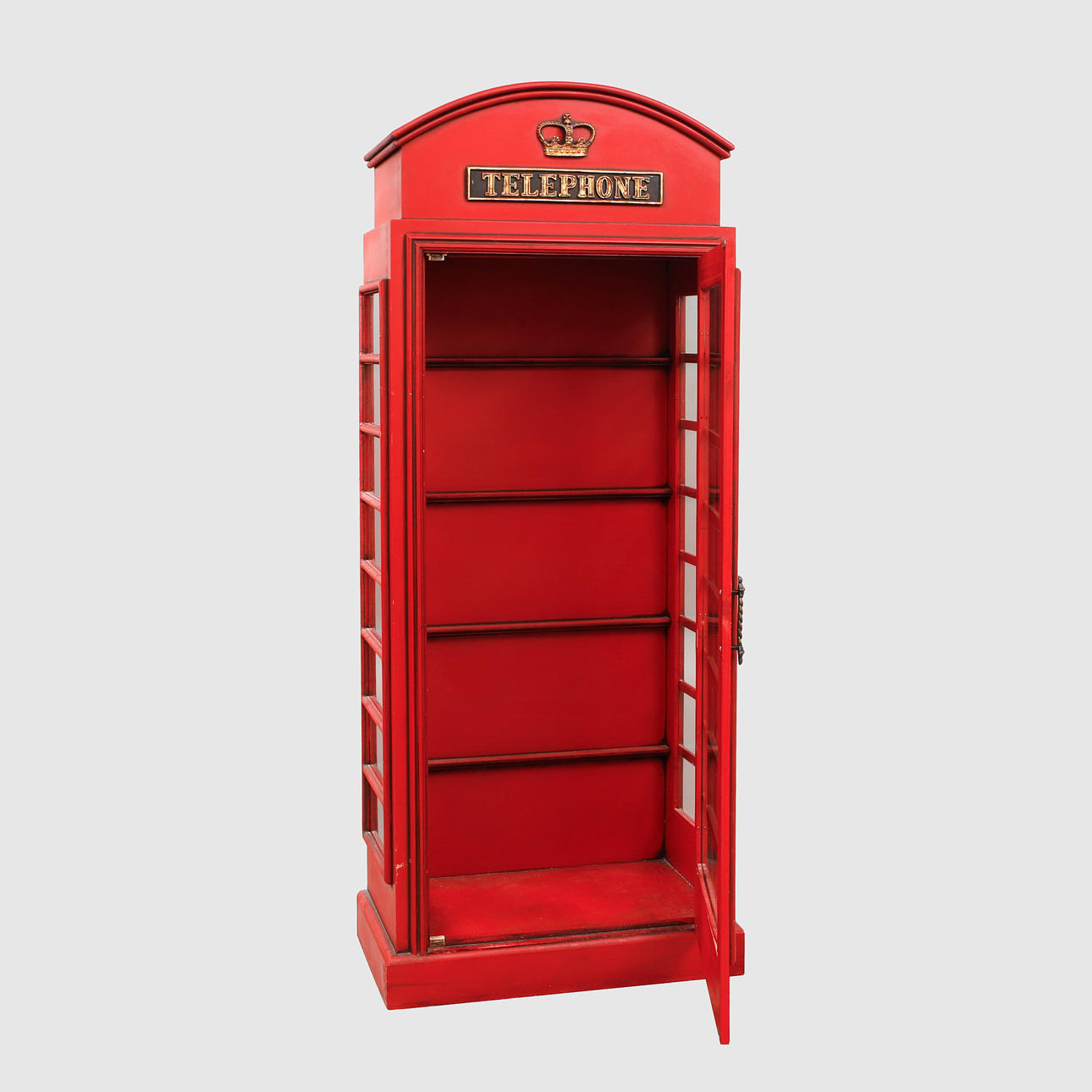 Punainen lakattu arkkimateriaali sivulasilla ja lasiovella. Pituus n. 70, syvyys n. 40, korkeus n. 183 cm. Valaistus ja vaatepalkki mahdollisesti myöhemmät lisäykset.