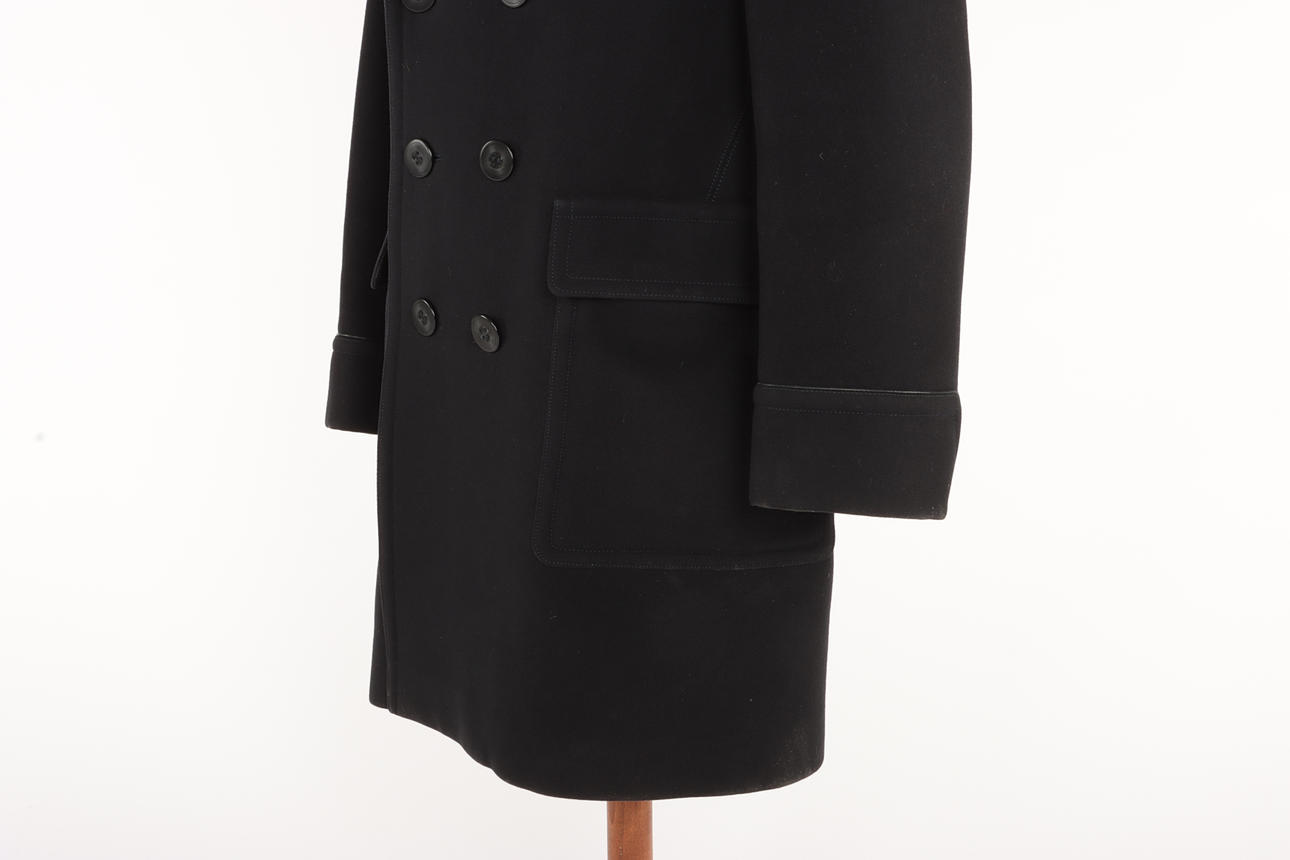 Tummansininen miesten takki, villaa, kaksirivinen, taskuläppä, hihansuljin kapealla nahkareunalla. Stl 56, Tom Ford.