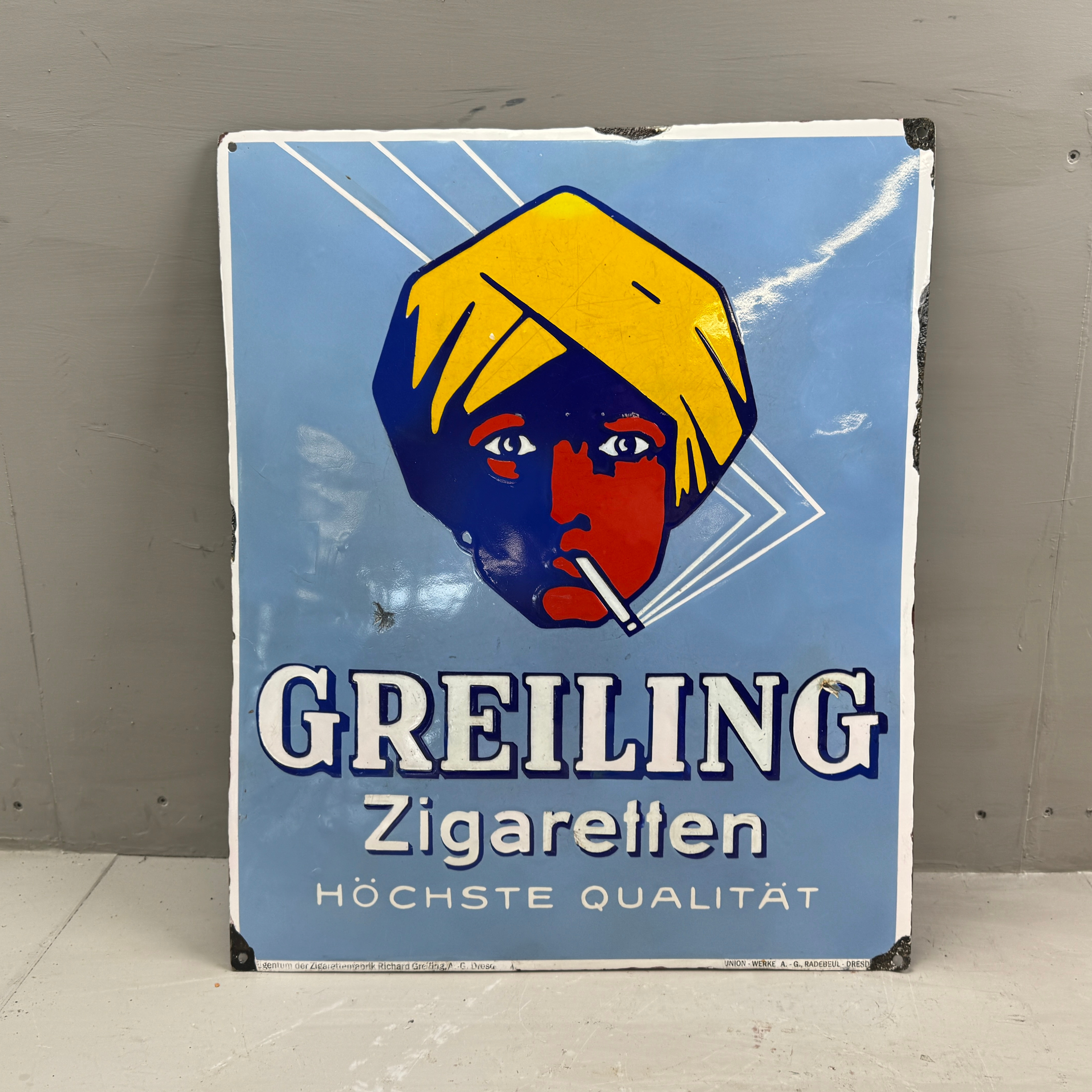 3752742. GREILING SIGARETTEN, emalikyltti, 1920/30-tal.