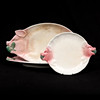 Pyöreä tarjoiluastia, n. 25x33 cm. 2 kpl tarjoilulautasia. Pituus 48x25.5 cm.