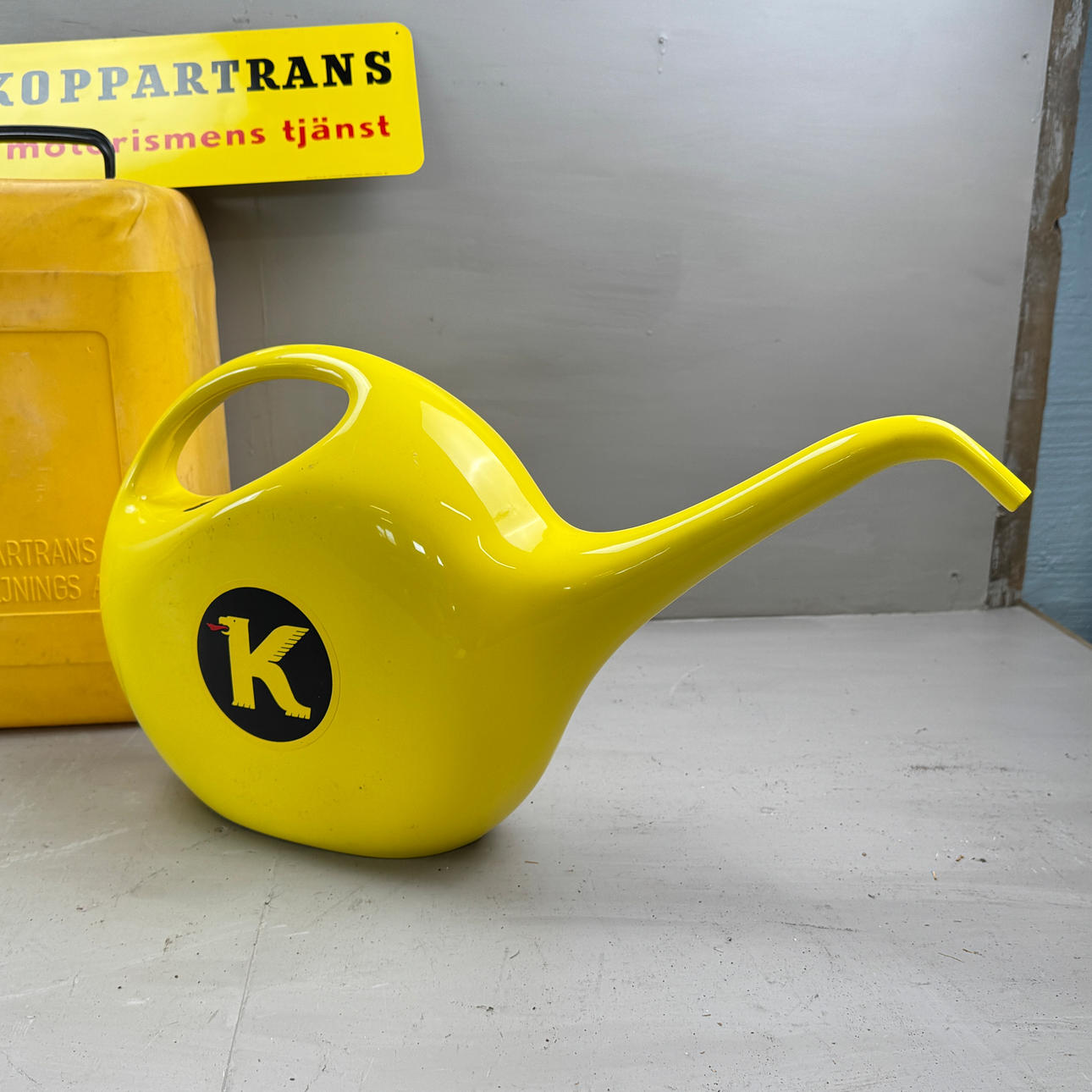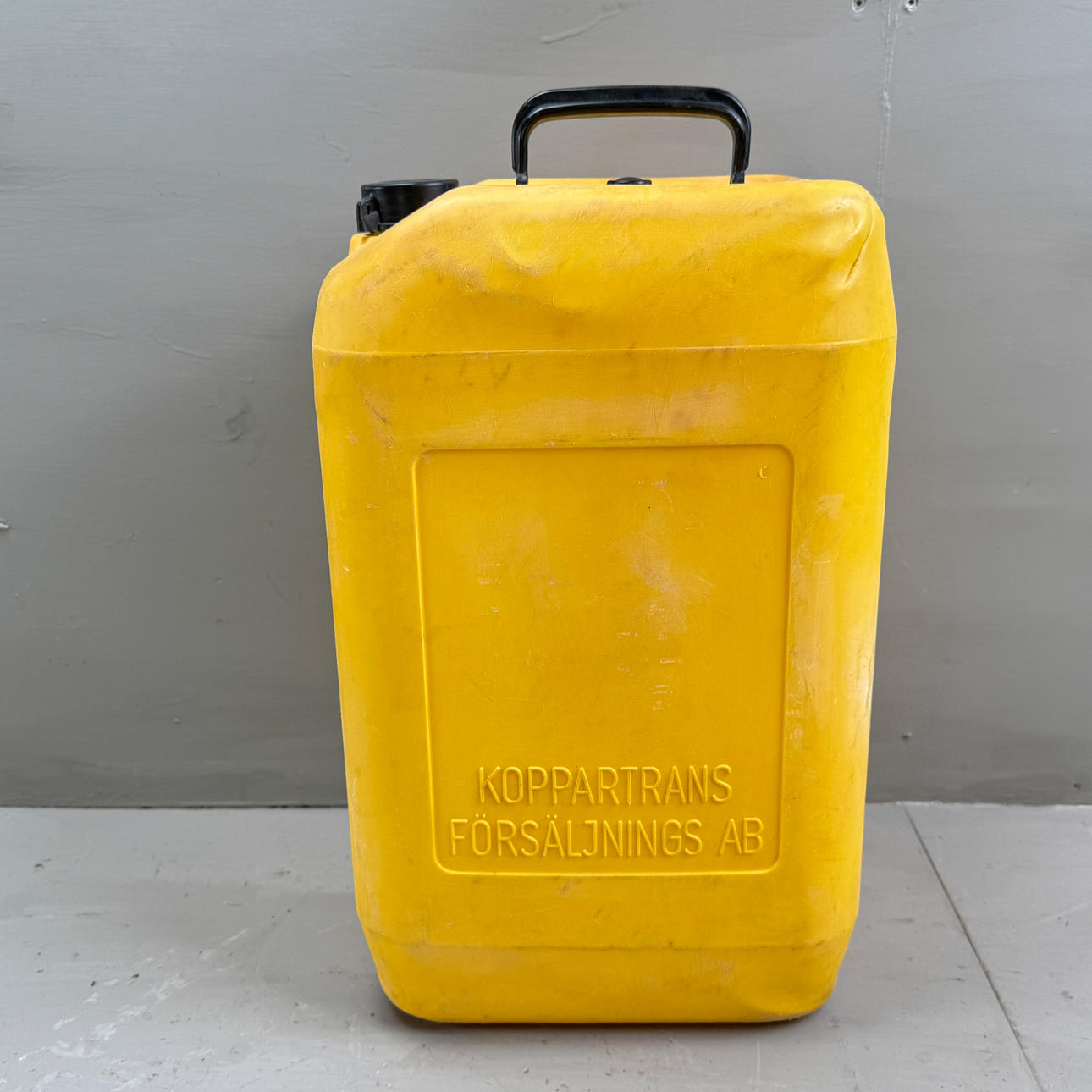 Vesikannu, muovipurkki, peltipurkit (2 kpl), kyltti.