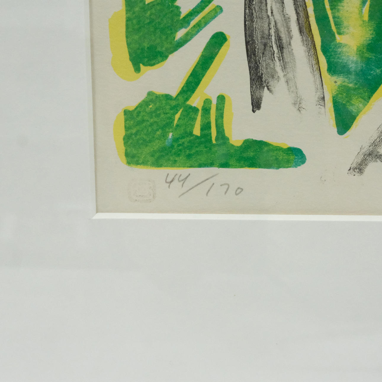 Signeerattu, numeroitu 44/170 ja päivätty. Kuvan mitat: n. 49 x 59,5 cm. Rungon mitat: n. 71 x 80 cm.