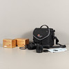 KAMERAVARUSTEET laukulla.