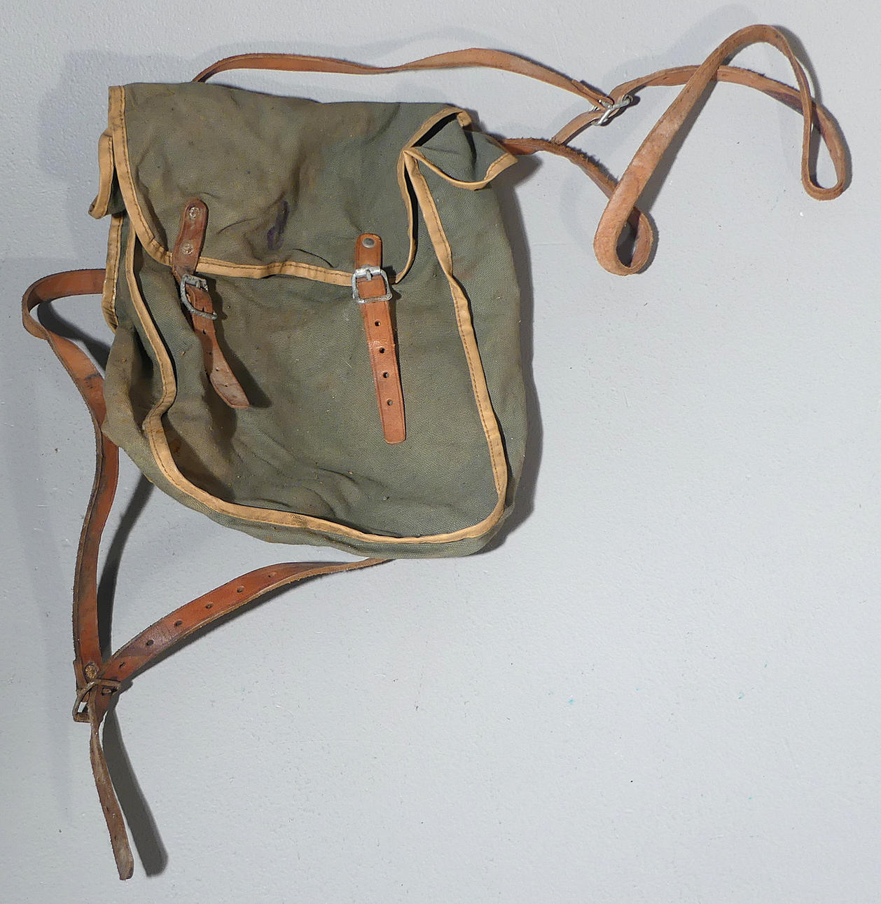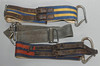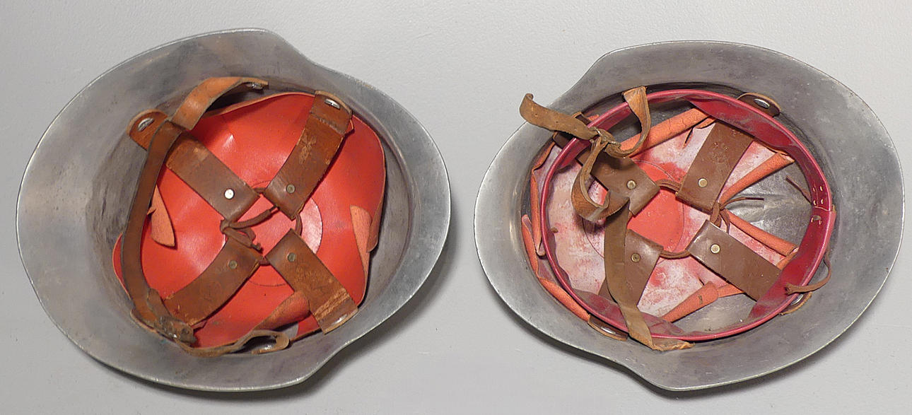 Kaksi kypärää, kolme palovyötä, laukku ja palohälytyspainike.