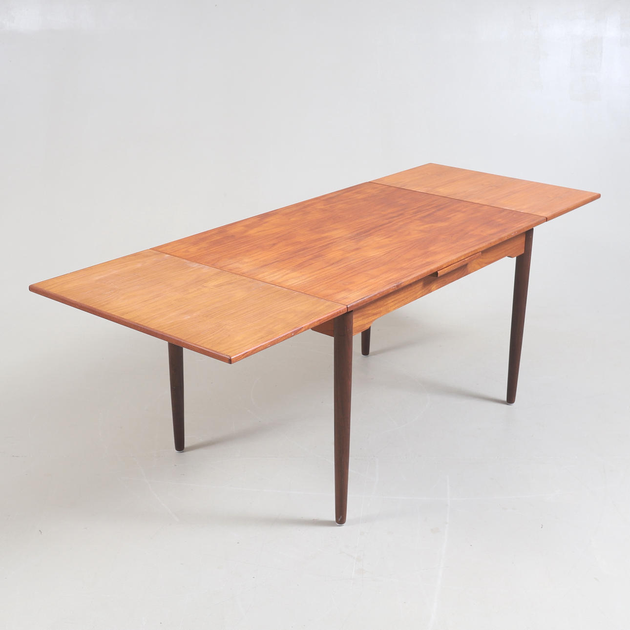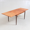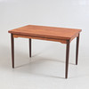 Pyöristetyt jalat. Kaksi 47 cm: n ulosvedettävää levyä. Mitat noin 122 x 84 cm. Korkeus 77 cm.