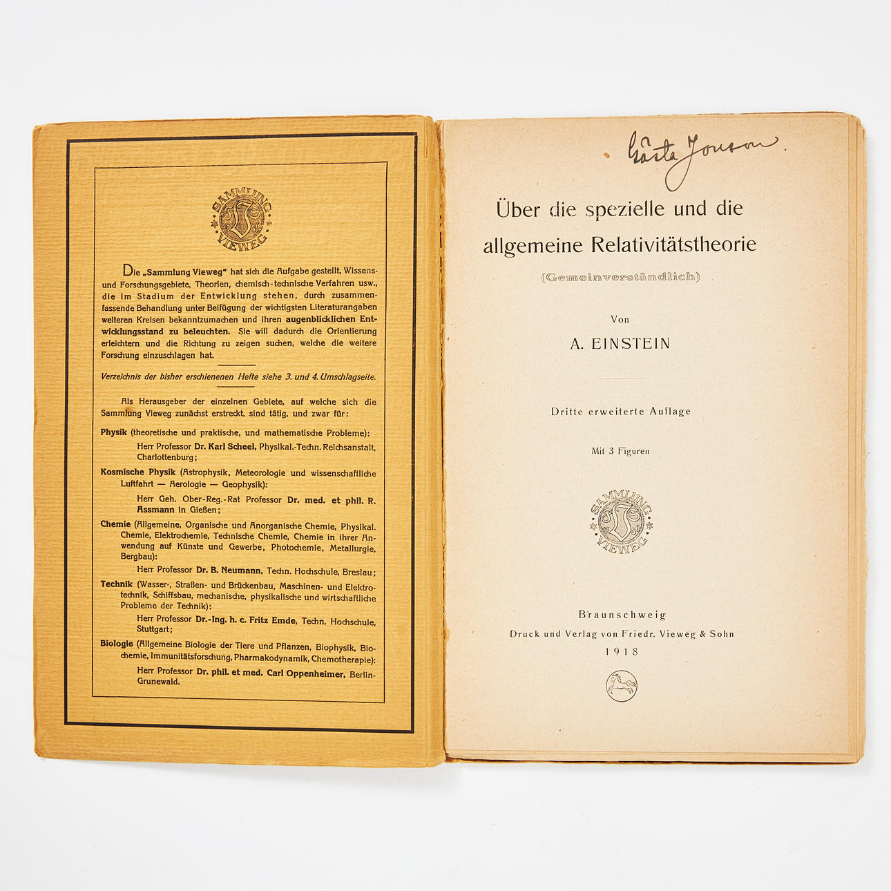 EINSTEIN, ALBERT. Käytä erityistä ja yleistä suhteellisuusteoriaa (Gemeinverständlich) (..) Braunschweig vuonna 1918. Paska laajennettu aukko.