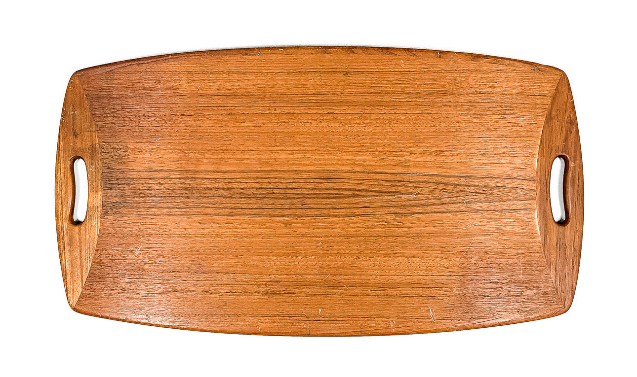 3811502. Tarjotin, tiikkipuku 1950-luku.