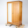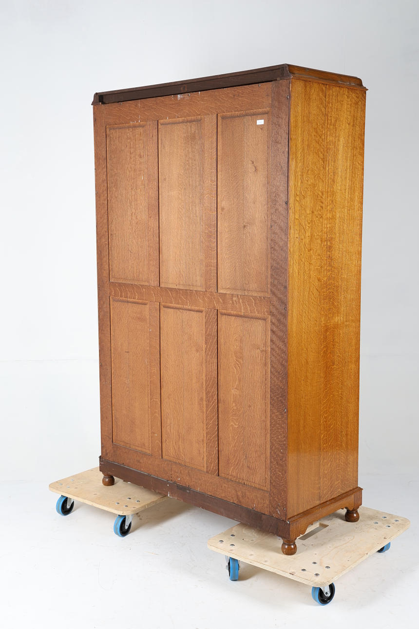 1900-luvun alun ja puolivälin kaksiovinen vaatekaappi, jossa viistoreunainen peili ja korotettu pallojaloille, valmistanut Ralph Johnson, Cabinet Maker, Warrington, 197 cm korkeus, 123 cm leveys, 54 cm syvyys.