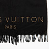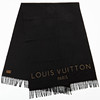 Musta kashmirhuivi, jossa on kudottu beige sisustus ”LOUIS VUITTON PARIS” ja hapsut lyhyellä sivulla, etiketti merkinnällä ”LOUIS VUITTON PARIS”, n. 200 x 70 cm.