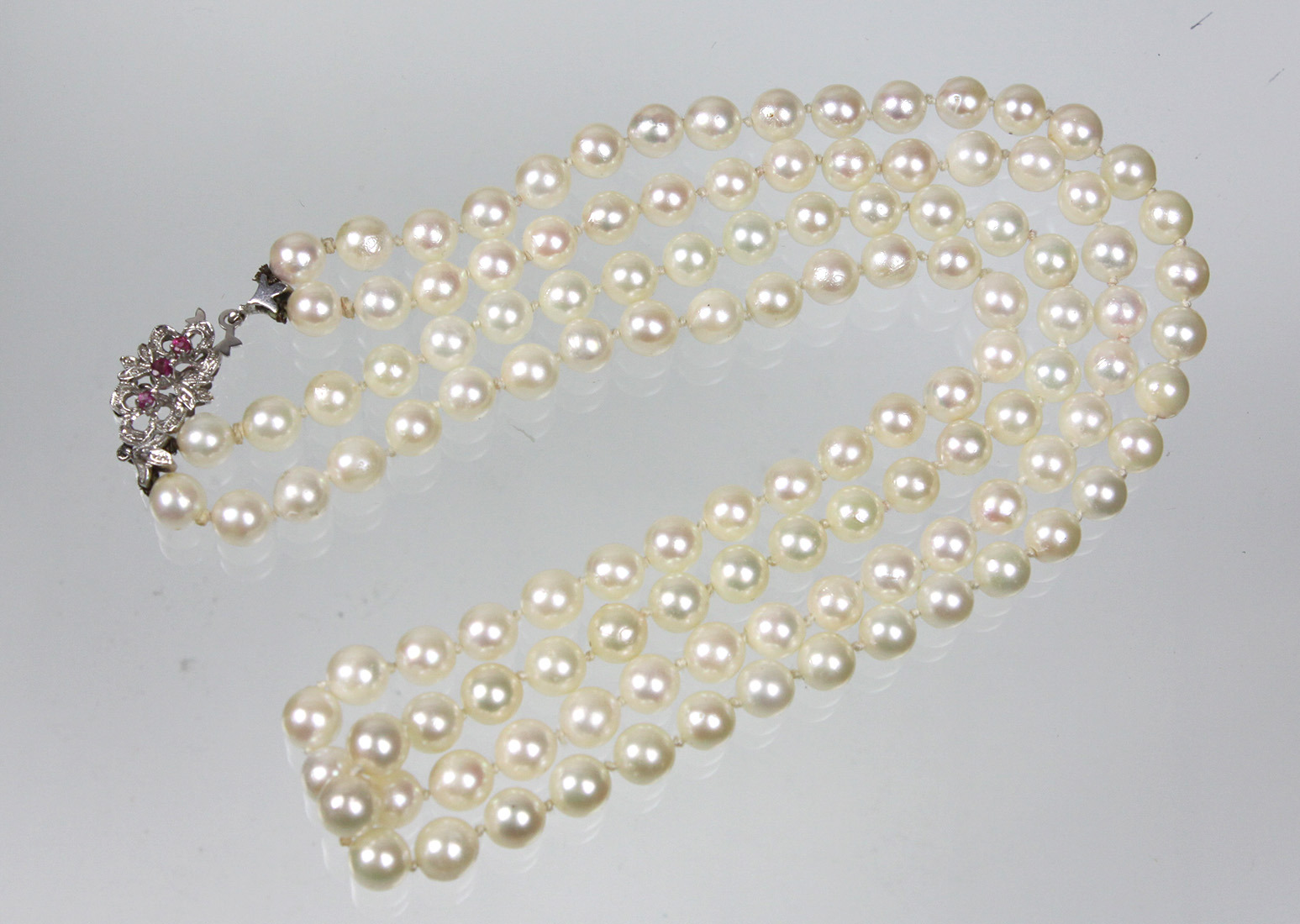 382629. KAULAKORU, Akyoa-helmiä, valkokulta 750.