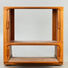 Osittain viilutettu tiikki. Hifi-kaappi, jossa 2 suljinovea. Varustettu kiinteällä hyllyllä, joka voidaan vetää ulos.