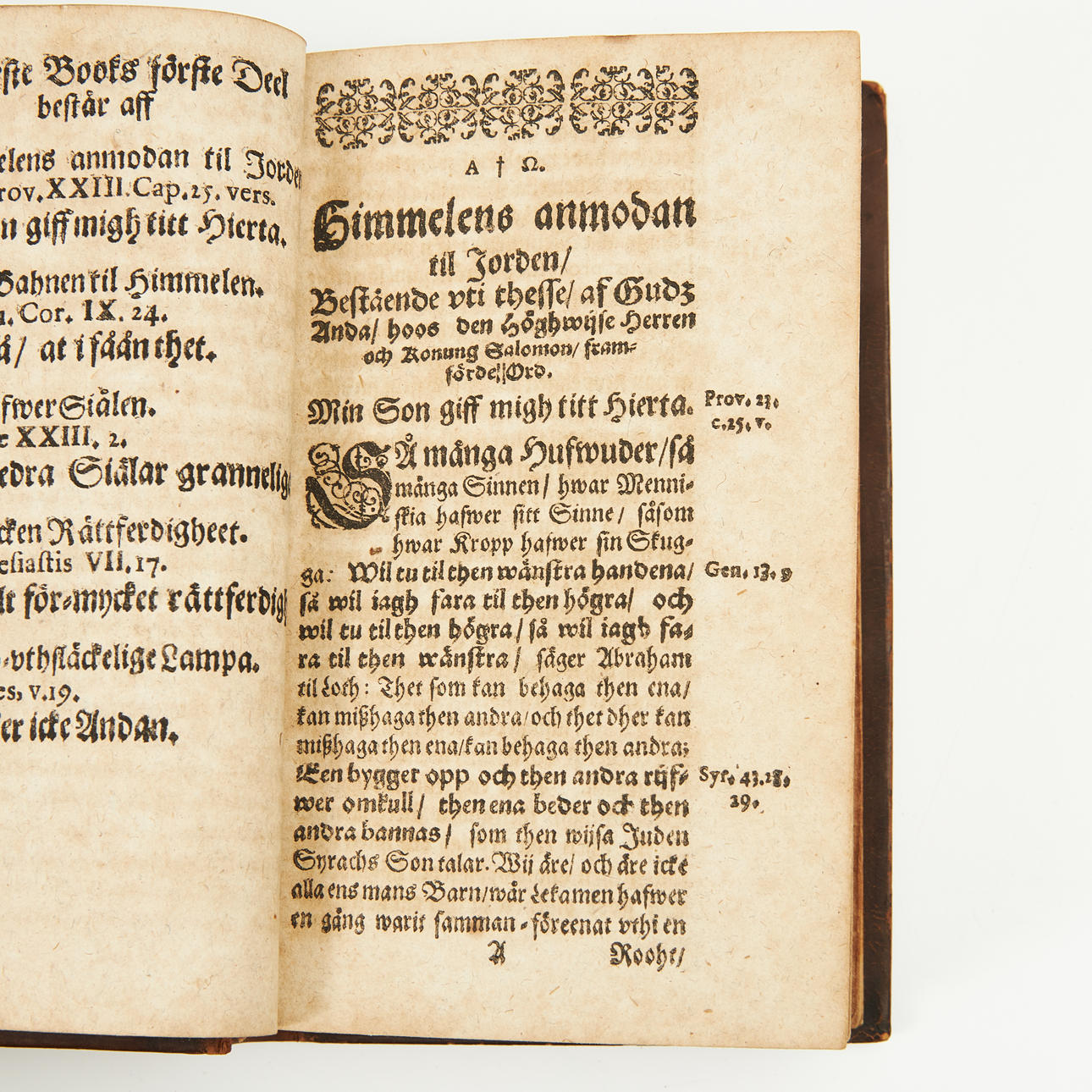 LEMWIJK, OLOF SWENSSON. Safft aff setripuut Libanonissa (..) Ensimmäinen kirja, osat 1 ja 2 (kaikki julkaistu). H. G. Eberdt, Stockholm, del 1,1674 (toinen painos) del 2, 1673. (32).