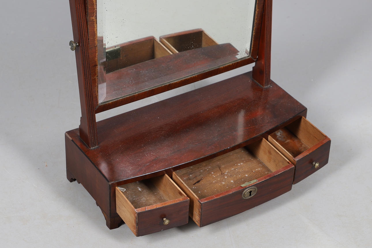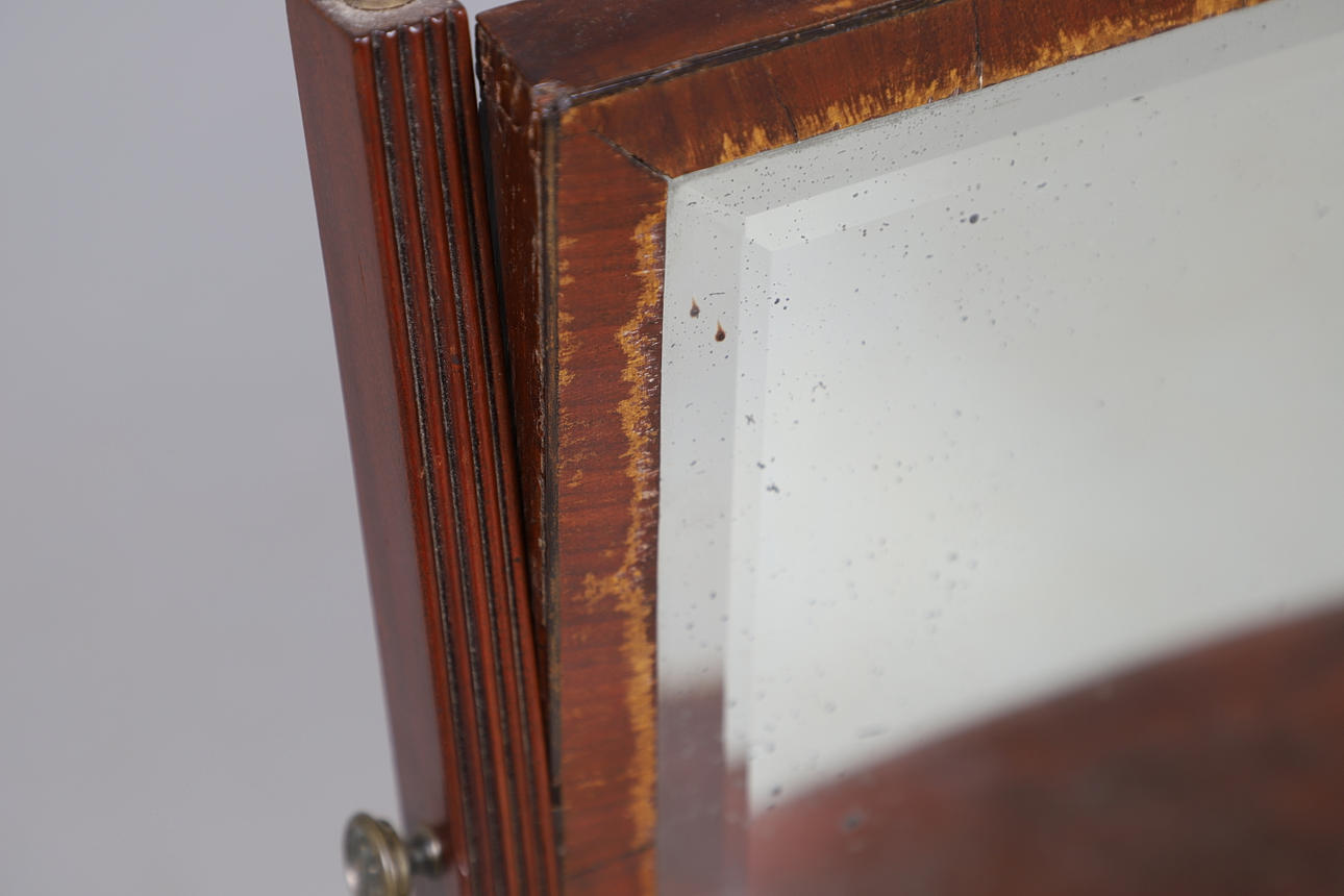 Yleiset merkit ja naarmut puuhun. Hopeointi lasiin. Lasia ympäröivä puu voimakkaasti kulunut. Katso online-kuvat.