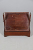 Viistoreunaisella suorakulmaisella lasikappaleella keulan päällä on kolmen laatikon pohja. Seisoi kiinnitysjaloilla. Korkeus 56cm, pituus 51cm, syvyys 22cm.