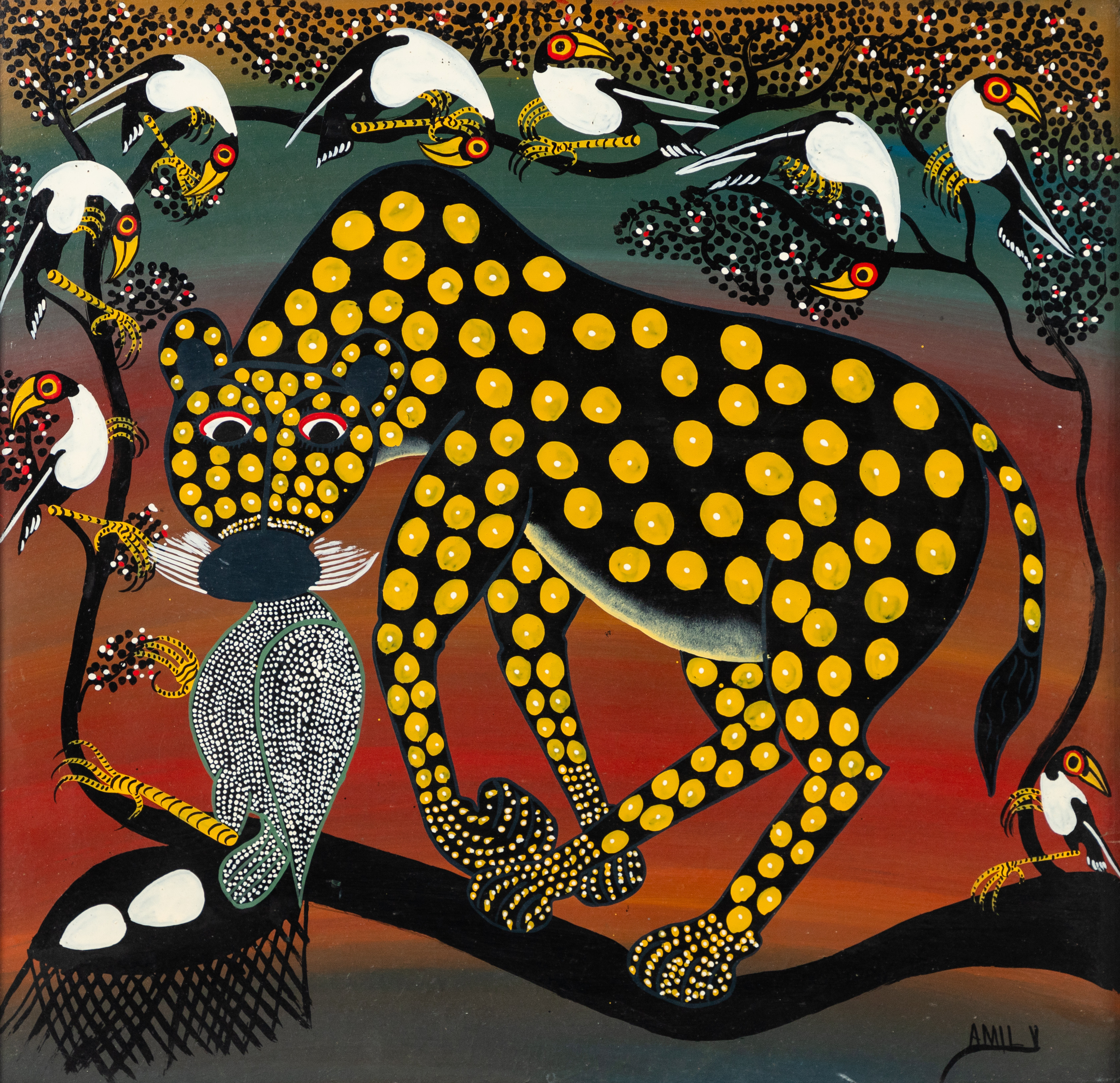 3895643. AMILY. Leopardi syö lintuja.