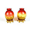 Pari amberina-lasimaljakoita. Korkeus 15cm, halkaisija 10cm.