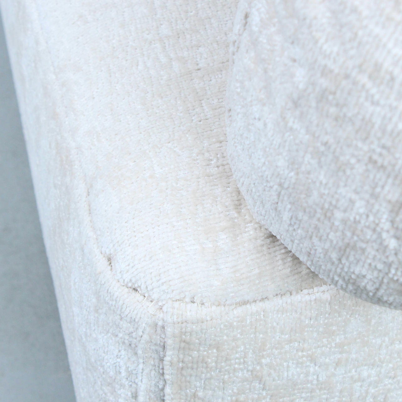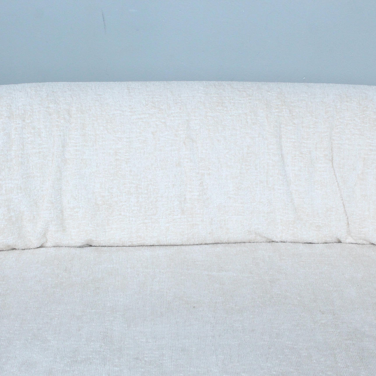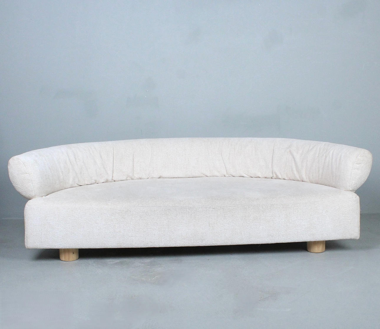 sohva/sohva kaarevalla istuimella, verhoiltu ja peitetty kirkkaalla muhkealla kankaalla,