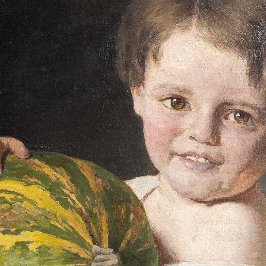 3919384. AUGUST JERNBERG. Poika melonilla, signeerattu.