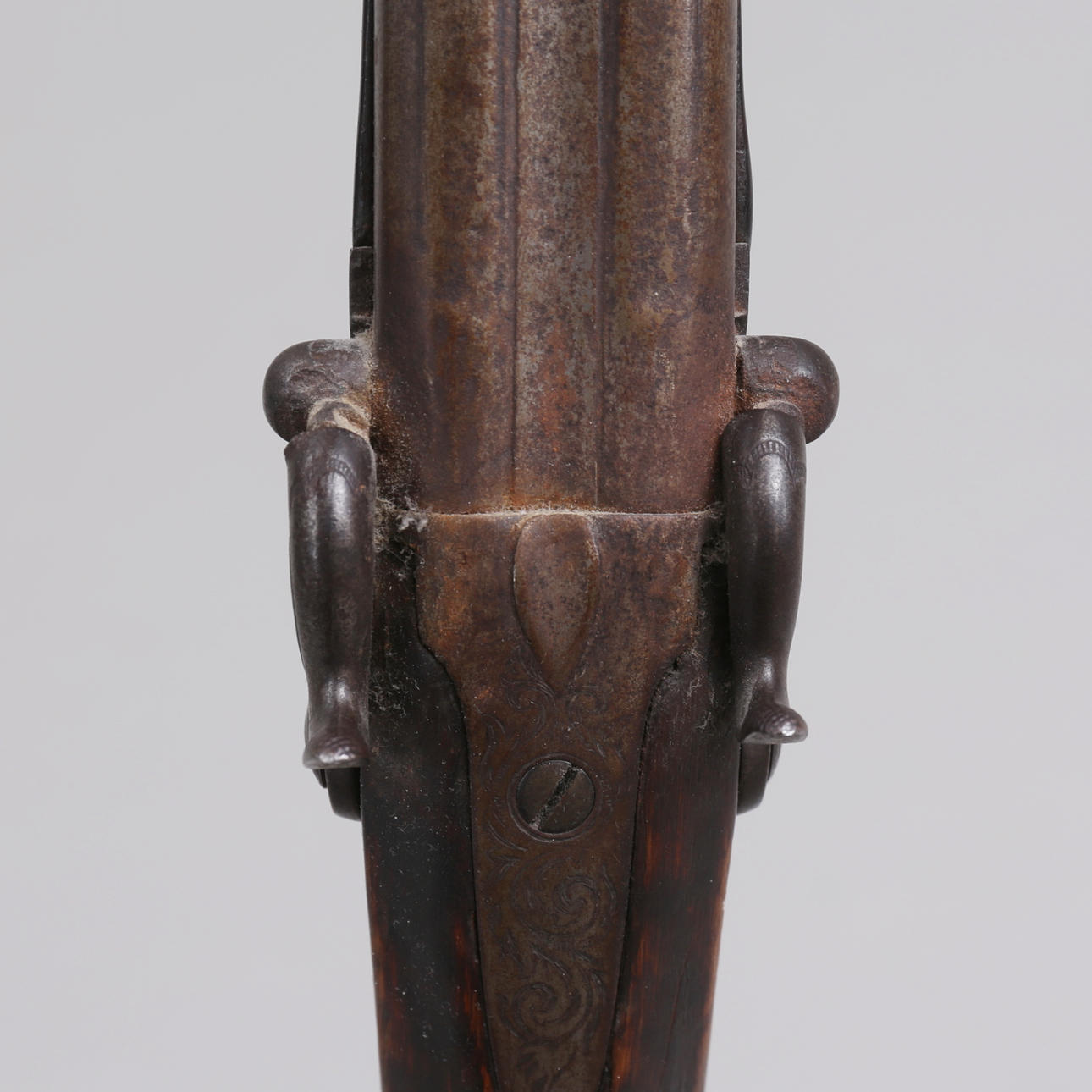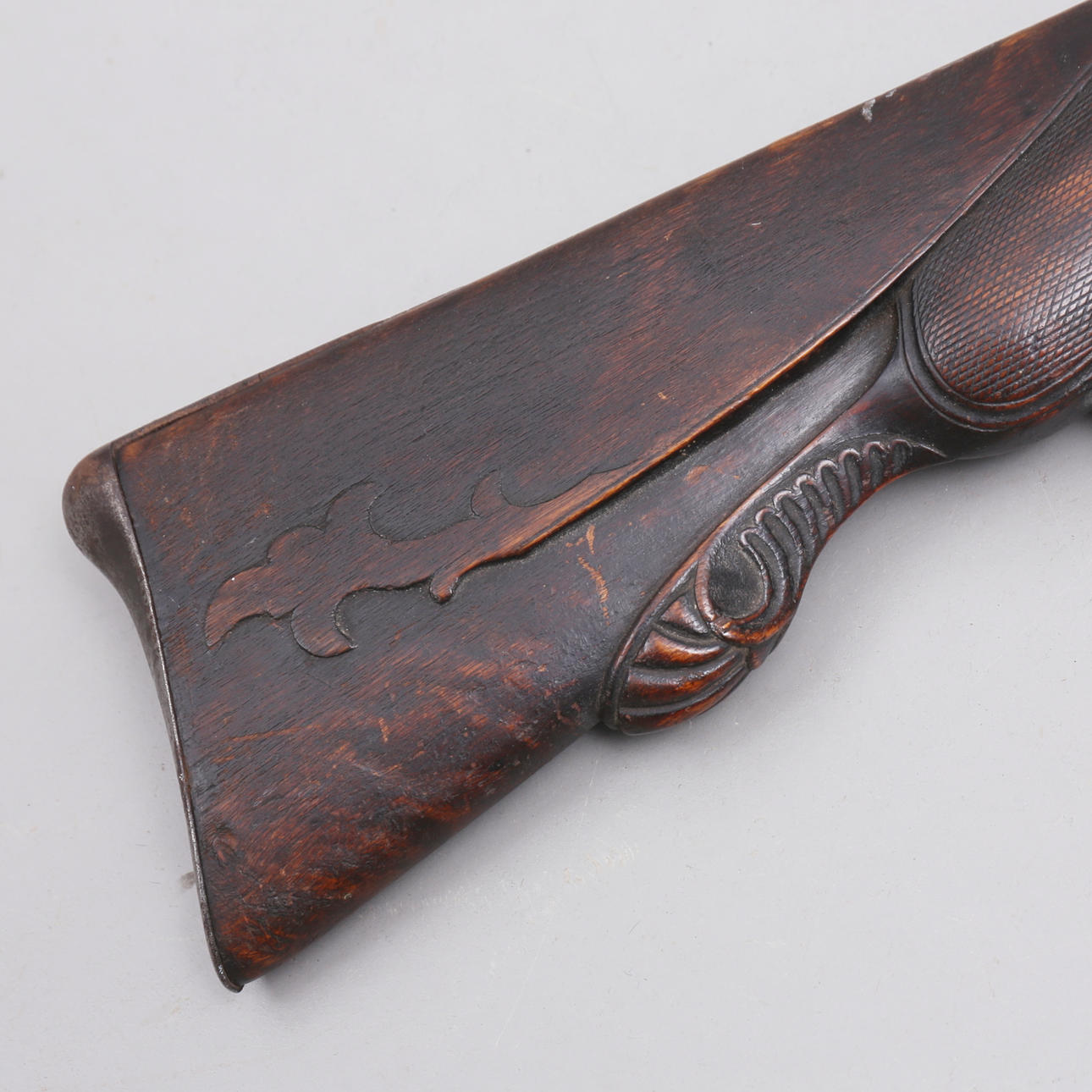 Varasto leikatulla sisustuksella. Puinen latauspaalu. Pituus 120 cm, putkien pituus 79,5 cm.
