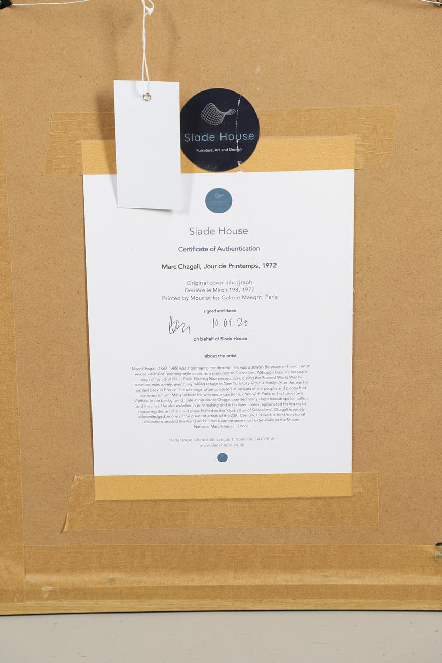Chagall-aiheessa vaaleat kettuiset ja pehmeät rypyt arkin reunoissa; juliste hyvä kokonaisuutena.