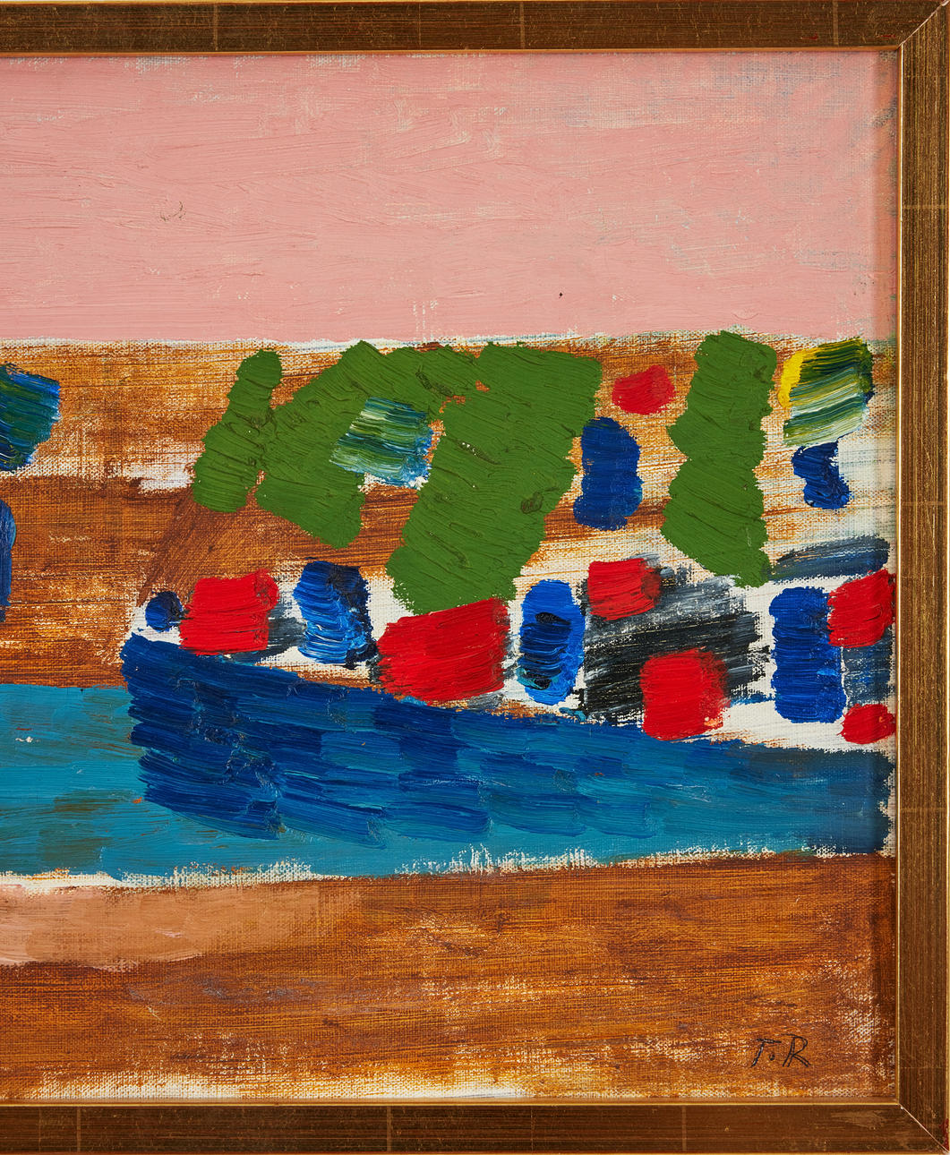 Öljy kankaalle monterad på pannå, 30,5 x 47 cm. Signeerattu T.R