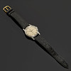 Automaattinen, pleksilasi, kotelo nro. 14704 4 SC, cal 591, laki nro. 17432300, nahkaranneke, solki, kultainen dubletti, halkaisija.