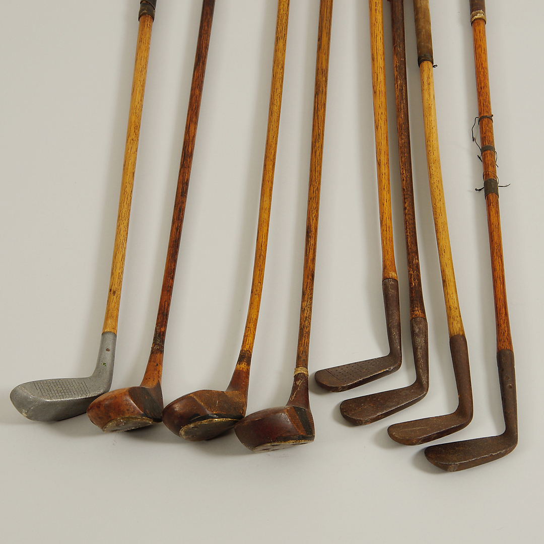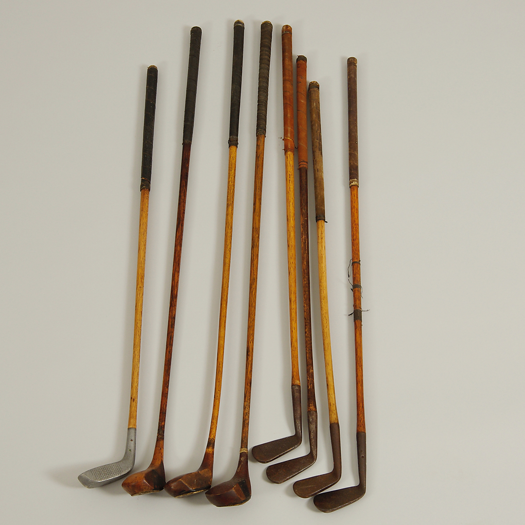 402058. GOLFIKLUBIT, 8 kpl, Hickory.