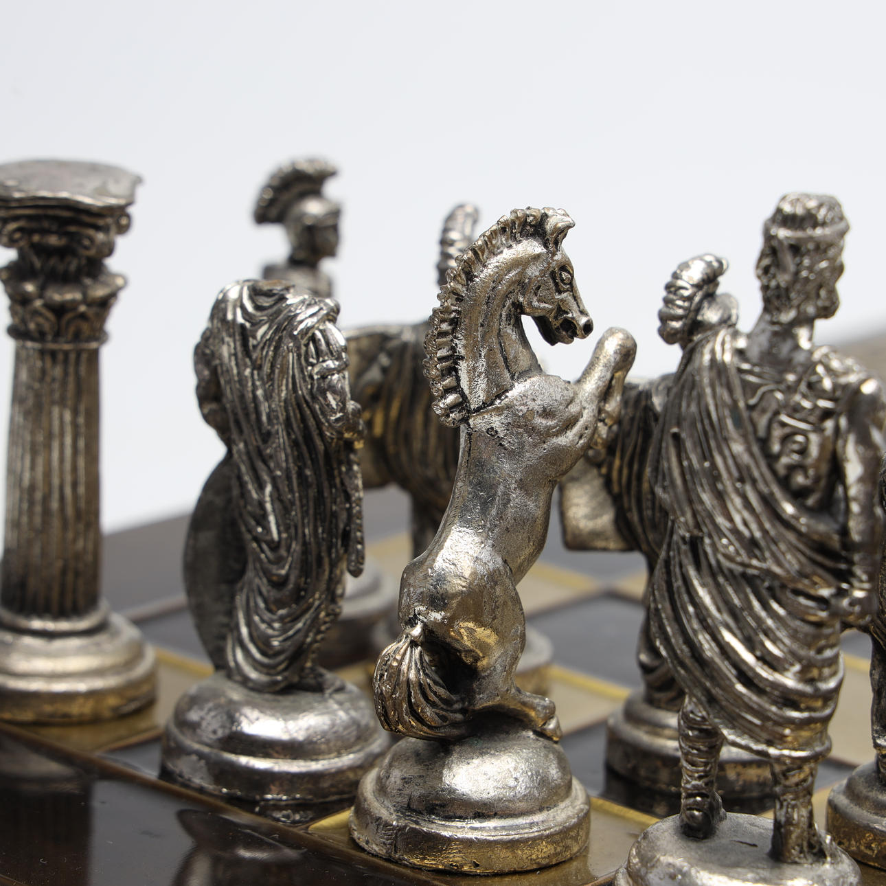 Metallinpalat, 32 kpl, korkeus n. 7-9 cm. Lauta, n. 35x35 cm.