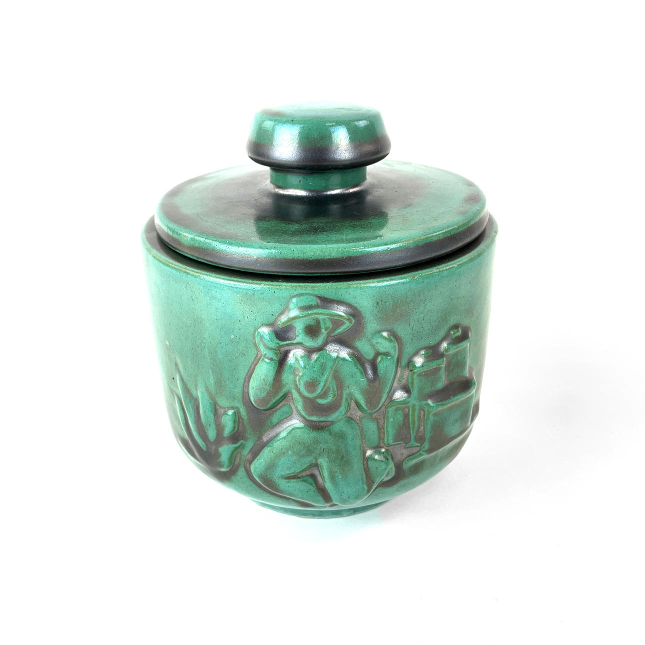 Korkeus kannellen13 cm, korkeus ilman lukkoa 9 cm, halkaisija 11 cm Leimasin St Erik Upsala Sweden, nro S61, G.L.