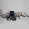 Nintendo GameCube -konsoli mustana (malli DOL-001 (EUR), S/N DE 12786044), ohjaimella, kahdella muistikortilla ja virtajohdolla, tämä erä sisältää myös valikoiman GameCube-pelejä, mukaan lukien Animal Crossing (virallinen Animal Crossing 59 -muistikortilla), Call Of Duty: Finest Hour, Pikmin 2, Metroid Prime 2: Echoes, Super Monkey Ball, Tales Of Symphonia (puuttuu levy 1), Donkey Konga, Donkey Konga 2 ja Donkey Kong Jungle Beat sekä irtonainen kopio Eternal Darkness -elokuvasta. (määrä).