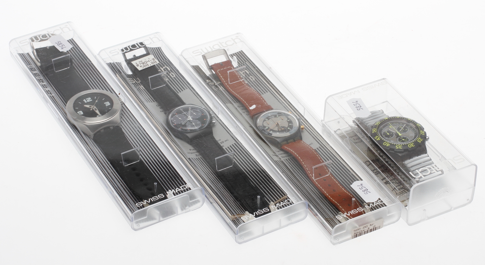 41147. MIESTEN Rannekello, 4 kpl, Swatch.