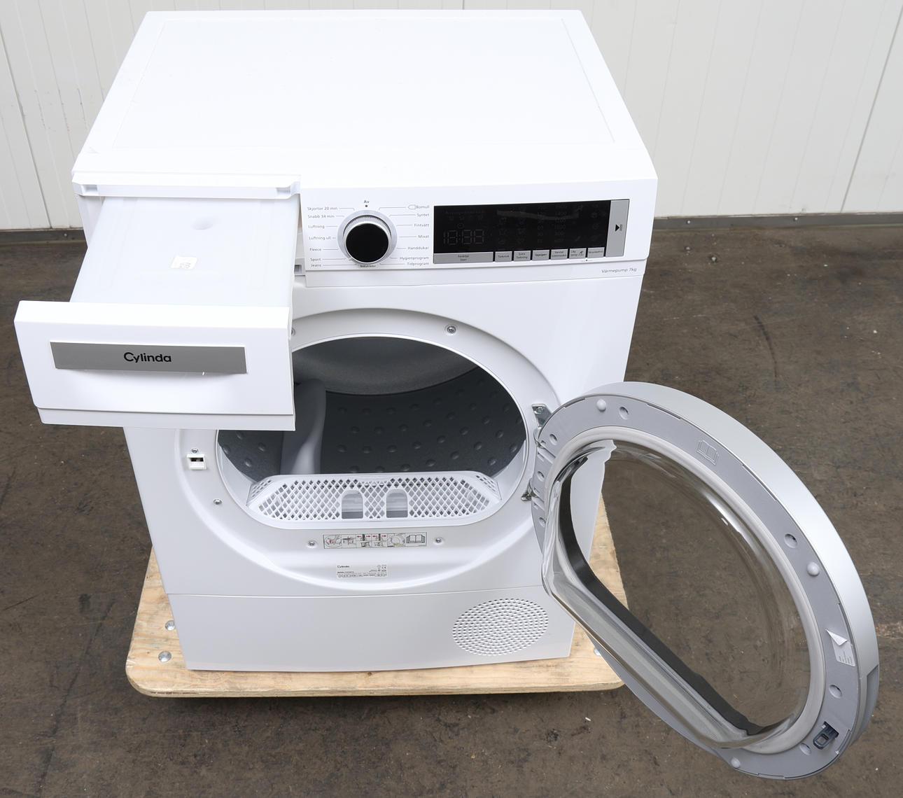 Lämpöpumppu 7 kg. Leveys 59,5 cm, syvyys 52 cm, korkeus 84,5 cm.