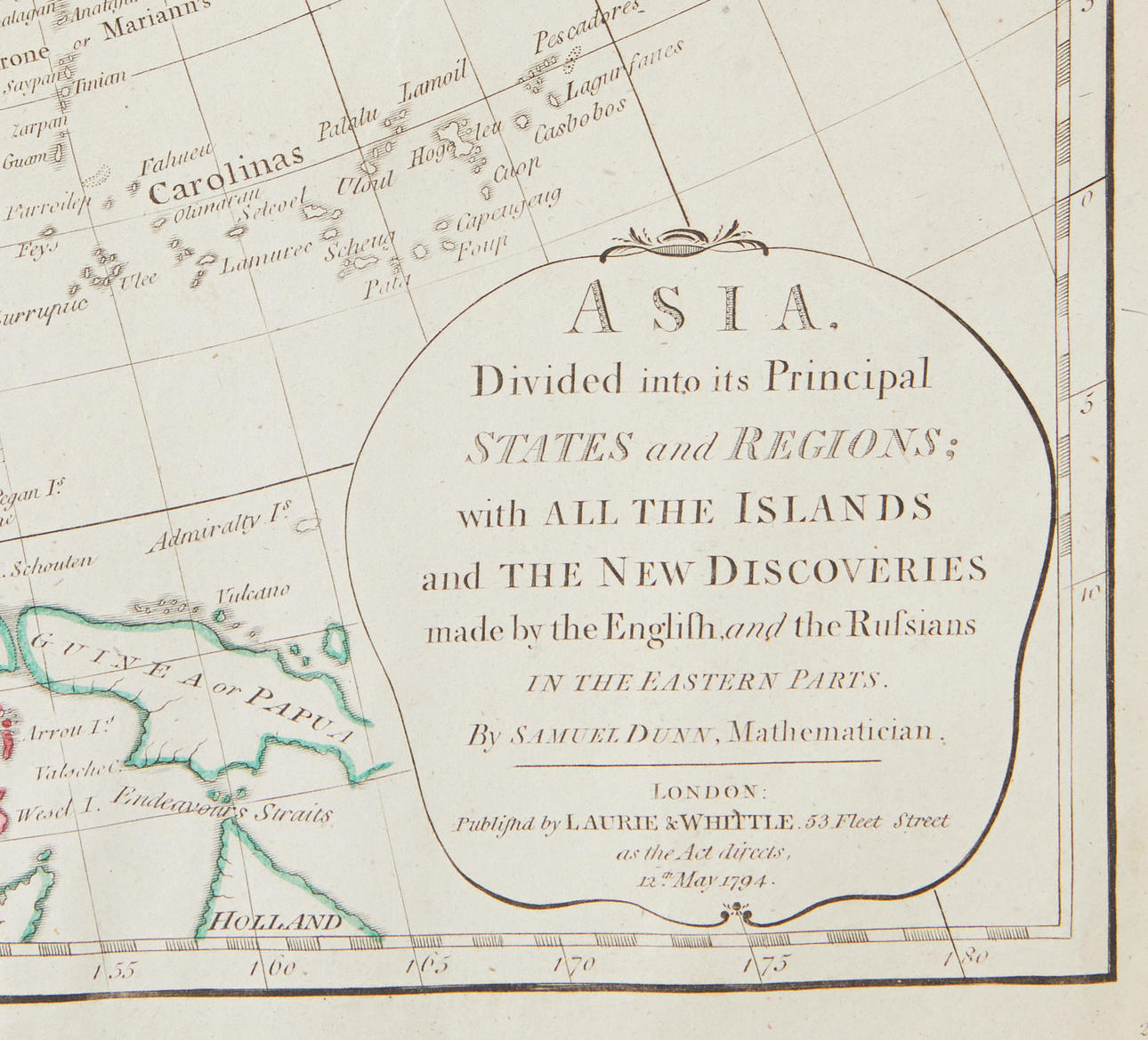 EN TIEDÄ, SAMUEL. Aasia. Jaettu tärkeimpiin valtioihinsa ja alueisiinsa; kaikilla saarilla ja uusilla löytöillä... Lontoo, Laurie & Whittle, 1794.